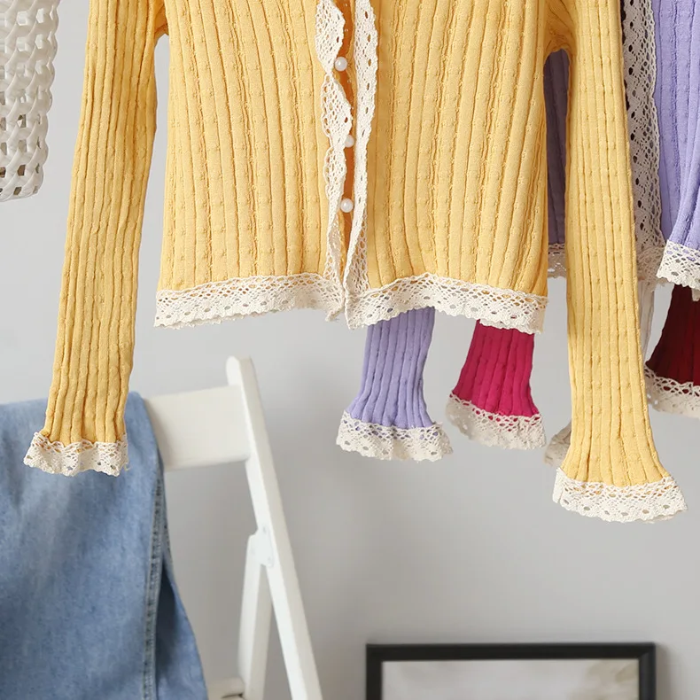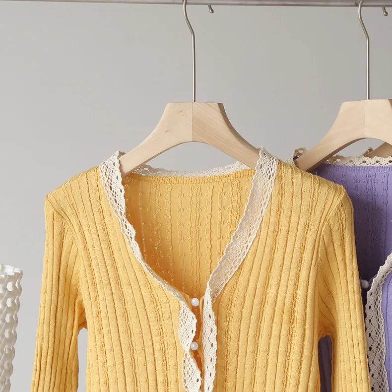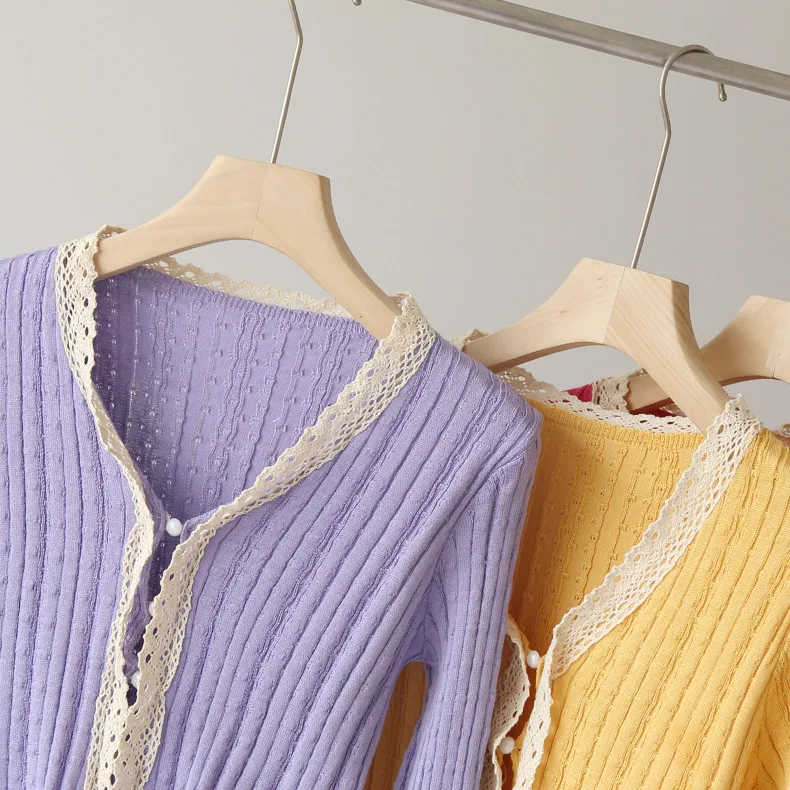 MONMOIRA, однобортный вязаный кардиган карамельного цвета, Женский французский Повседневный вязаный осенний базовый укороченный кружевной кардиган