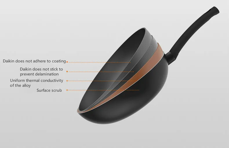 Используется утолщенная подложка из сплава 2,5 мм, одновременно покрывает несколько антипригарных покрытий, внутренний слой прочный, внешний слой прочный. * Дополнительно с этим горшком, чтобы купить рисовая индукционная плита A1