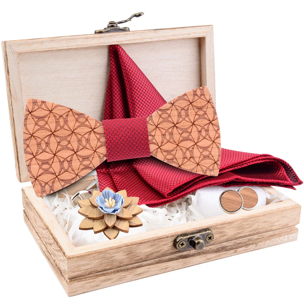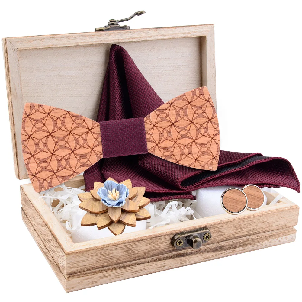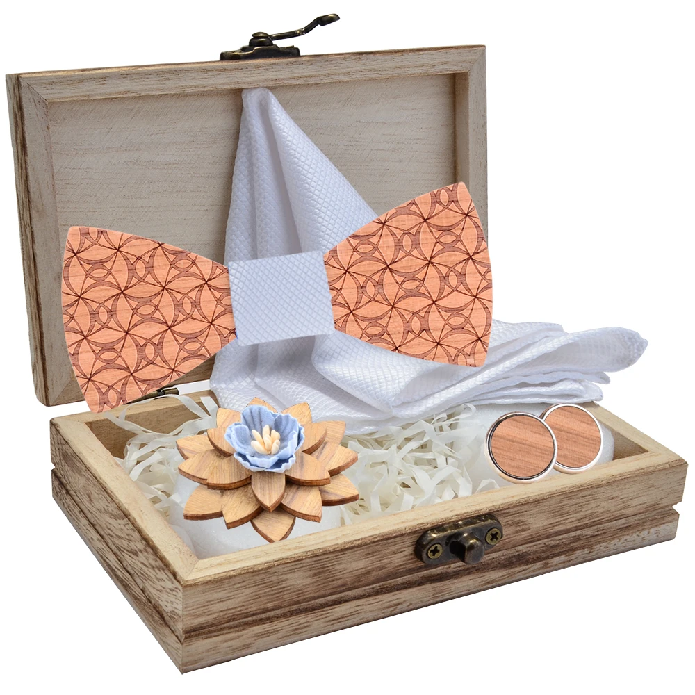Новые модные цветочные деревянные галстуки-бабочки, шелковые мужские карманные квадратные запонки, броши, наборы с коробкой, костюм, свадебные подарки, новинка, галстук-бабочка