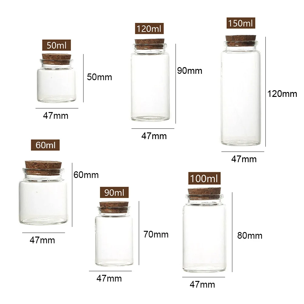 3 шт 50/60/90/100/120/150 мл прозрачная пробковая пробка стеклянные бутылки баночки-флаконы