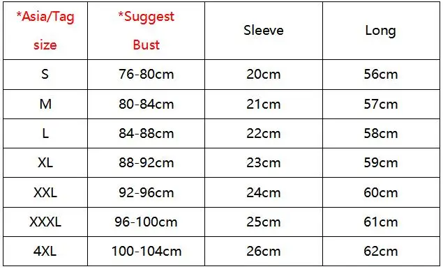 * Предлагаемый Бюст: поскольку эта одежда свободного покроя, Таблица размеров в бюсте больше, чем размер груди * Размер измеряется вручную, возможна погрешность в 1-2 см, Надеюсь, вы понимаете