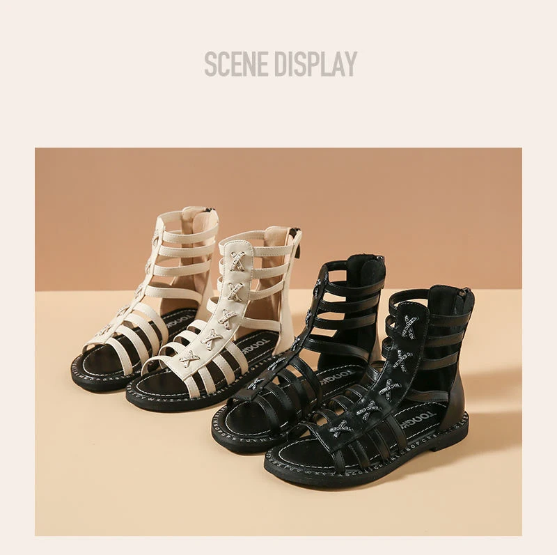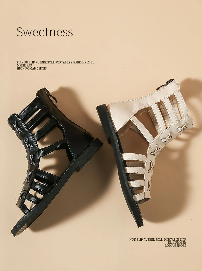 Новинка; Летние детские сандалии-гладиаторы до щиколотки; Детские сандалии принцессы из искусственной кожи; Брендовая обувь для маленьких девочек; Модные черные сандалии
