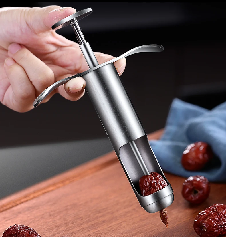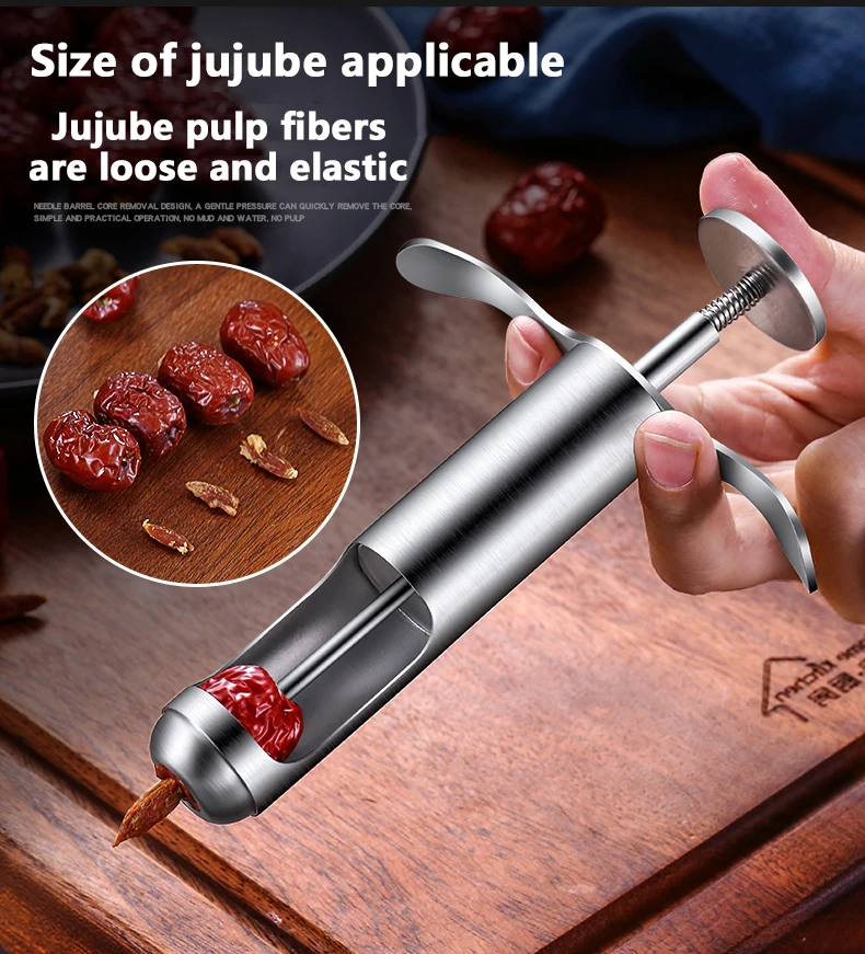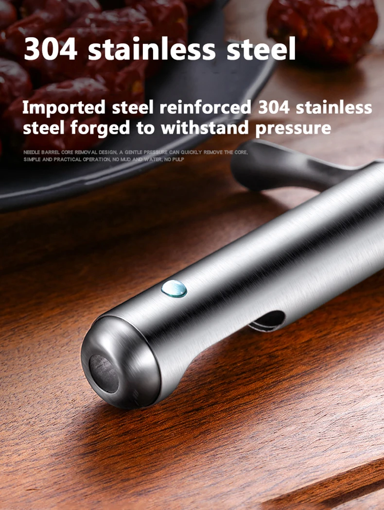 Features: Hand-held date pit removing machine Specifications: Name: nuclear device Material: 304 stainless steel Color: stainless steel Style: as shown Notes: 1. Due to different display and lighting effects, the actual color of the project may be slightly different from the color shown on the picture. Thank you very much! 2. Due to manual measurement, please allow 0.1--2cm measurement deviation.