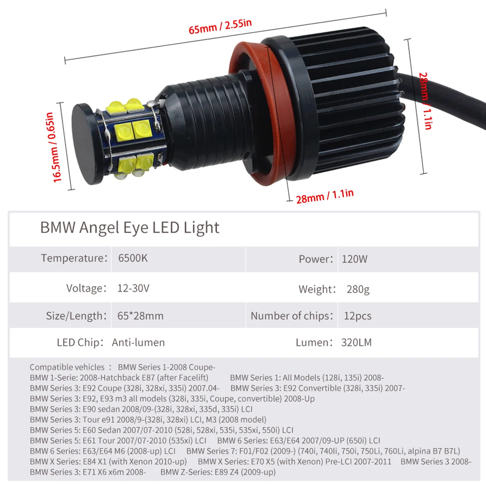 * Новая 6-гранная H8 120 Вт светодиодный Ангел глаз комплект обновления с 360 градусов супер яркий белый светодиодный освещение
