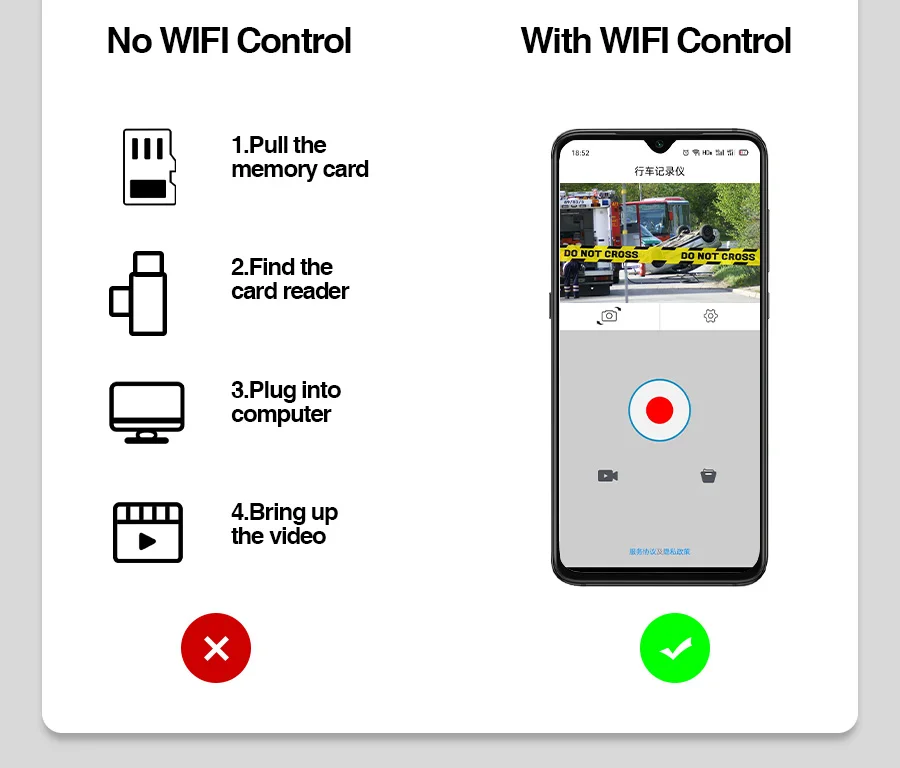 ● Тип установки: портативный рекордер, подходит для всех транспортных средств с лобовым стеклом