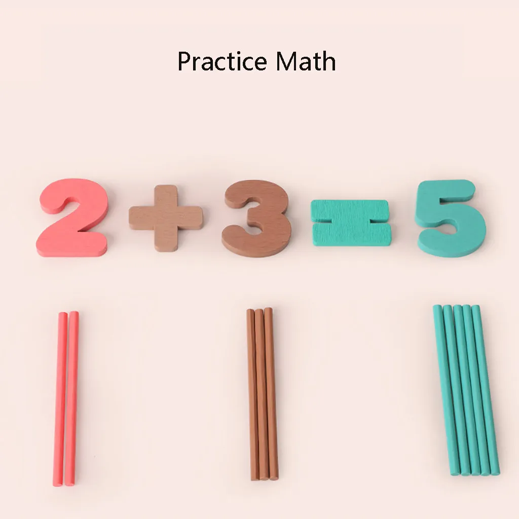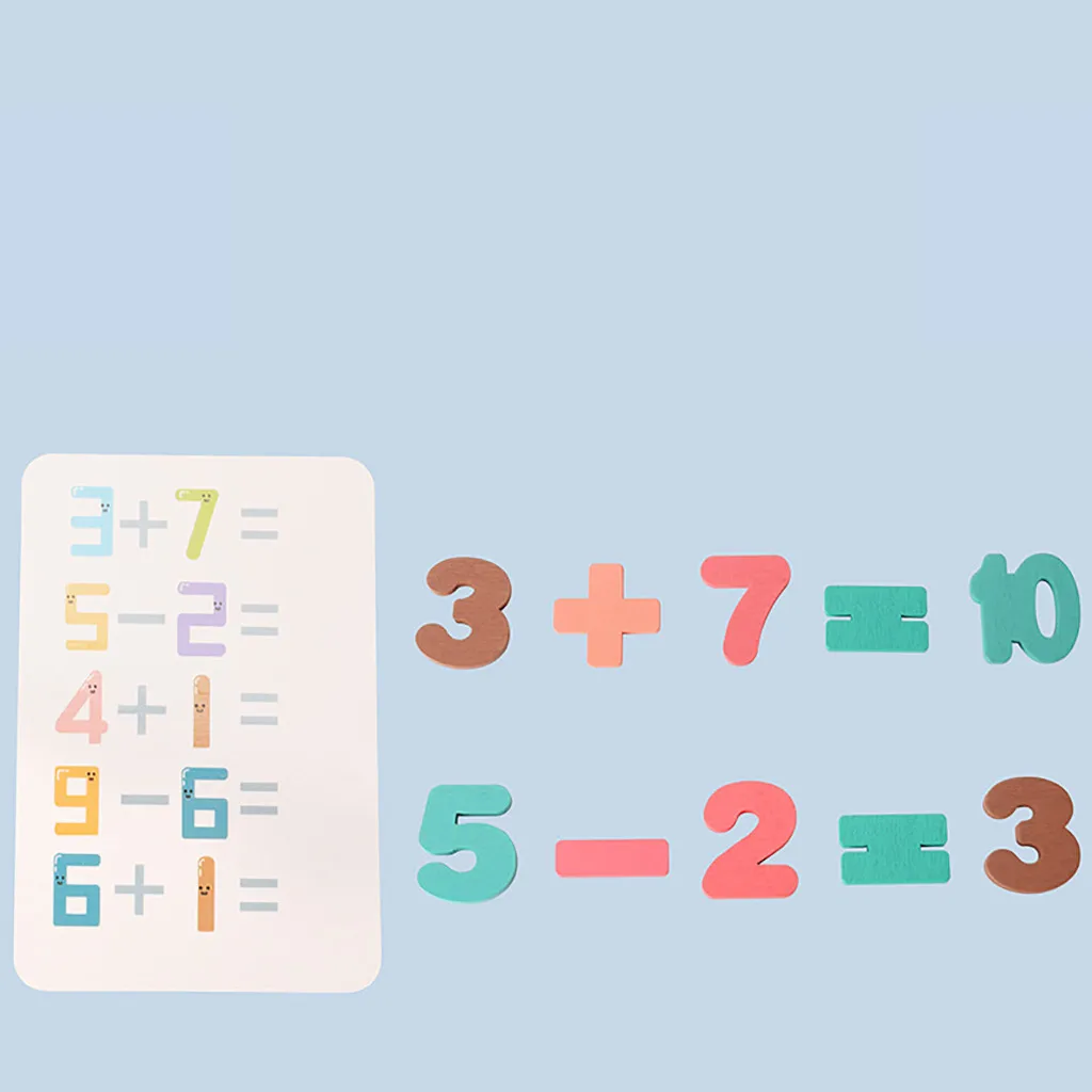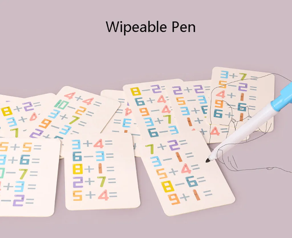 50 x арифметическая палка, 10 x карта, 5 x Арифметические строительные блоки с символами, 1 x стираемая ручка, 10 x цифровое здание Блоки