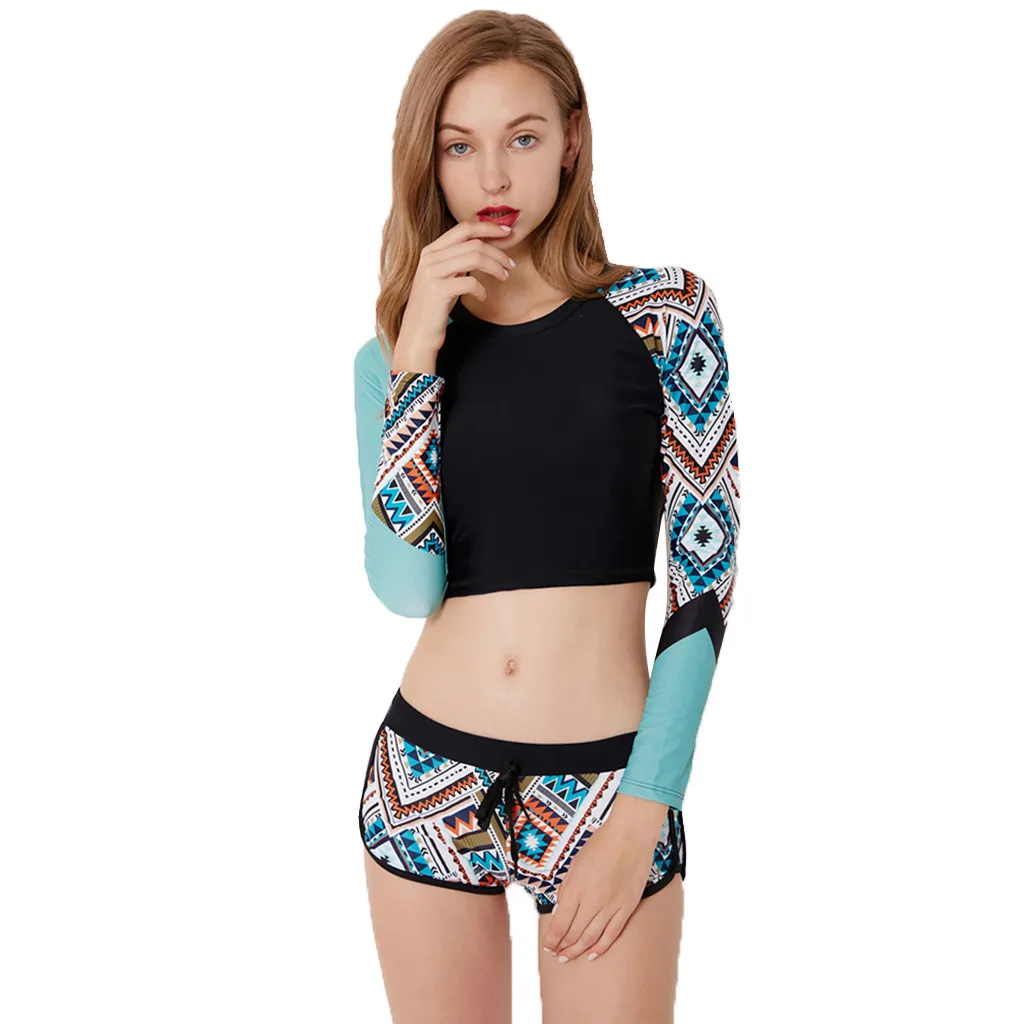 Женский костюм для дайвинга, короткий топ с длинным рукавом + шорты, комплект для серфинга, купальный костюм, женский костюм из двух предметов, одежда для серфинга # GH