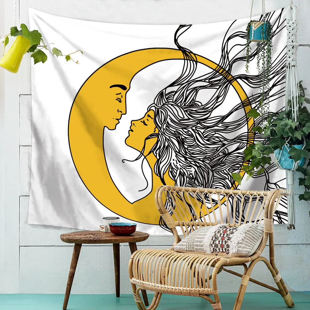 Белый, черный, солнце, луна, мандала, гобелен, настенный, небесная стена, гобелен, хиппи, стены, ковры, декор в общежитии, Psychedelic гобелен