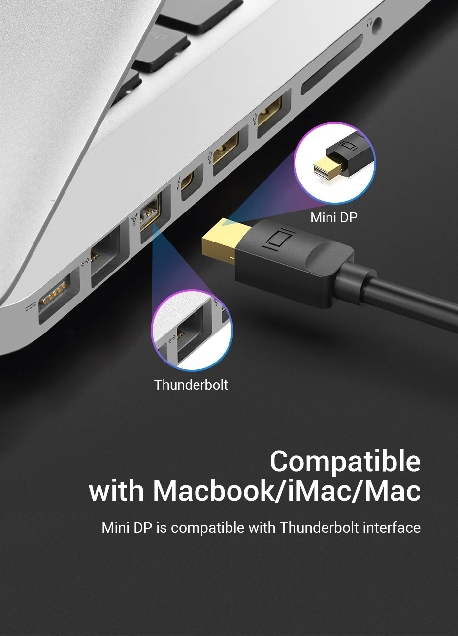 Mini DP is compatible with thunderbolt interface like Macbook/iMac/Mac.