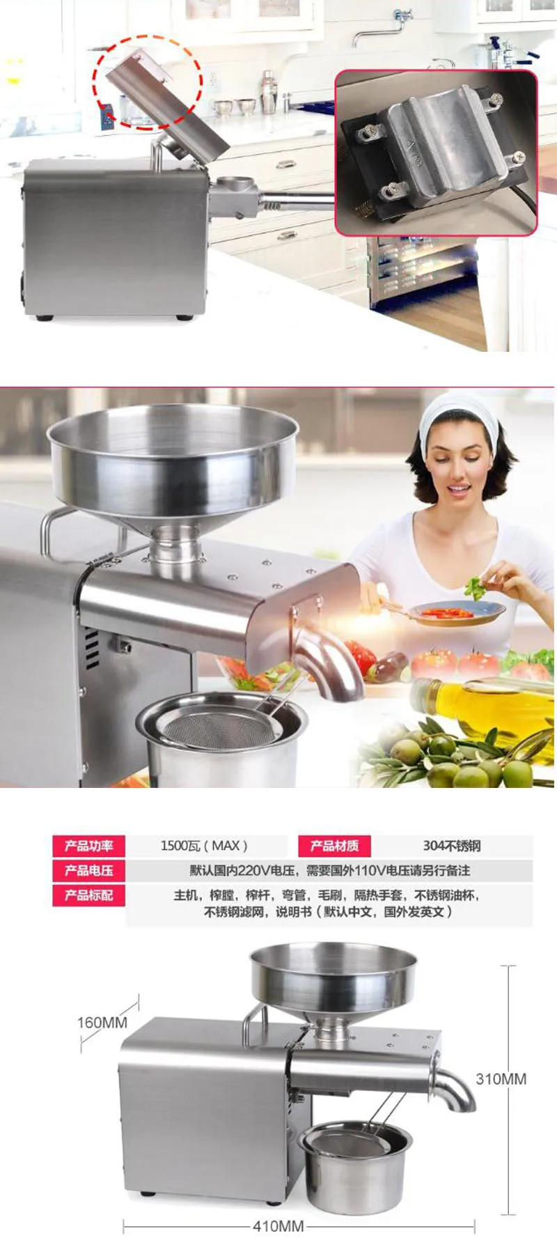 110/220 В пресс для масла из нержавеющей стали новая версия контроля температуры семена подсолнечника, рапса, семена чая, семена кунжута, арахис