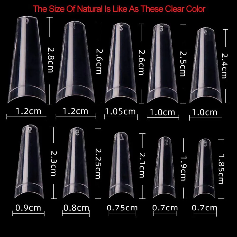 3. Натуральные наконечники для ногтей 500 шт.: 10 различных размеров (0-9) для разных пальцев, 50 наконечников для каждого размера.