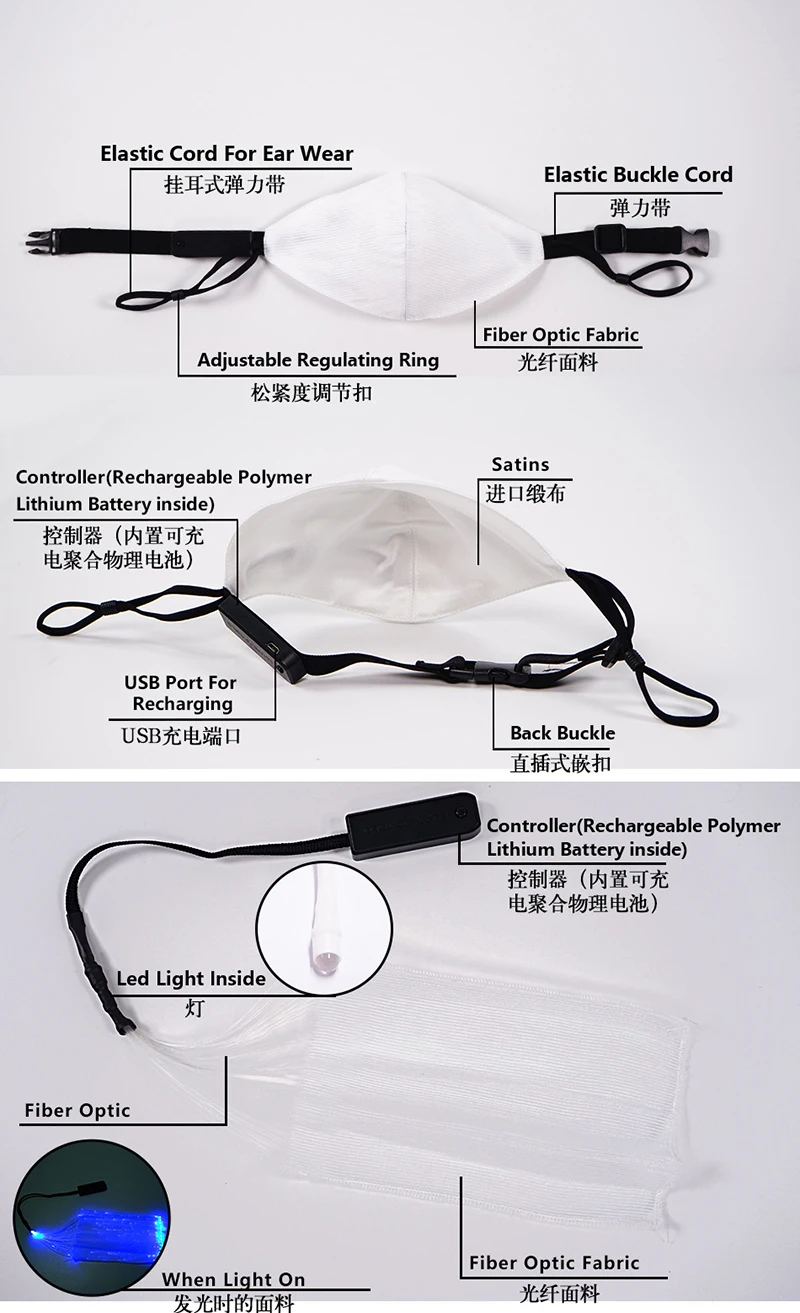 1. Материал: Волоконно-оптическая ткань 2. Источник: светильник RGB 3. Перезаряжаемая литиевая батарея: 230 мАч. 4. Сертификация: CE, RoHS и FCC Вес нетто: 0,04 кг Размер: 20*15*5 см