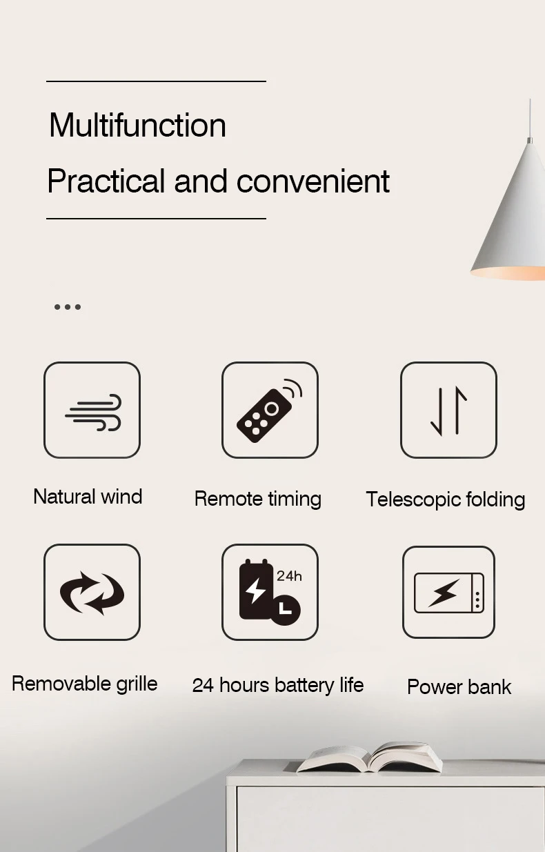 Телескопический складной Вентилятор портативный мини-вентилятор с пультом дистанционного управления USB Перезаряжаемый вентилятор Ventilador 7200mAh для домашнего путешествия
