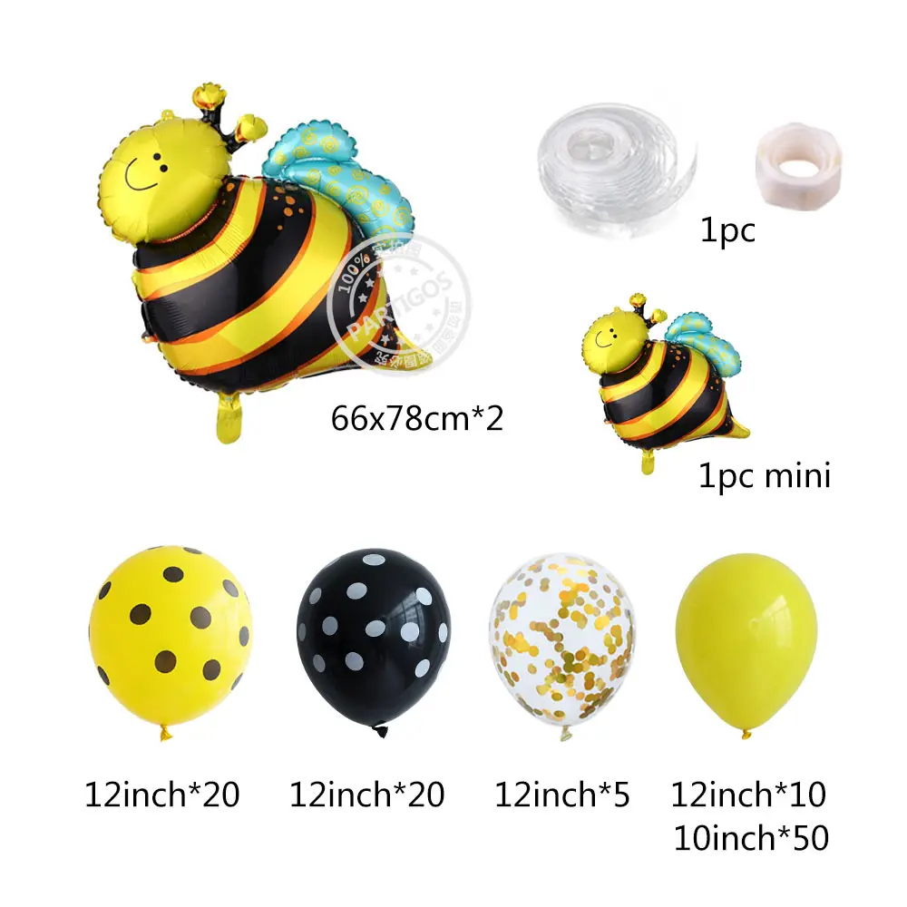 110 шт., латексные фольгированные шарики в горошек желтого и черного цветов