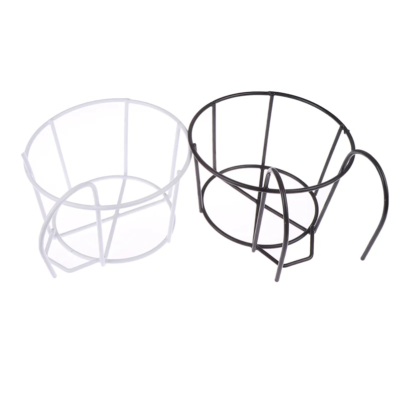 Suspended from a metal stand with a round base that keeps it steady