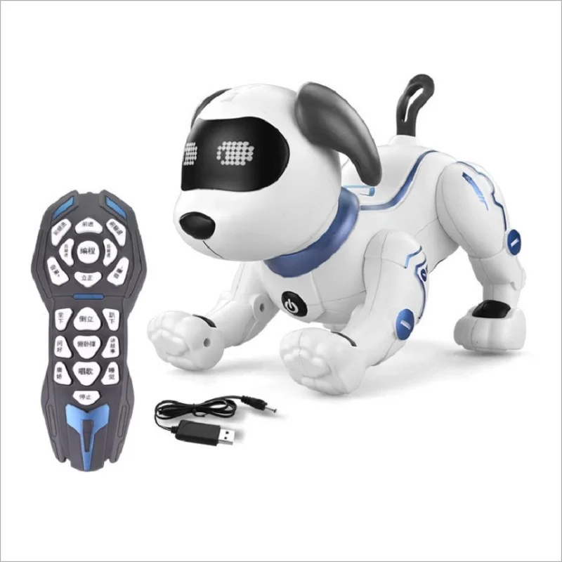 Название: умный собака Режим управления: инфракрасный пульт дистанционного управления Материал: пластик и электронные компоненты Батарея Продукта: 3,7 V 500mAh литий-ионный аккумулятор Индикация во время зарядки: USB кабель Время зарядки: около 240 минут Время воспроизведения: около 35 минут Расстояние управления: около 5 м Аккумулятор контроллера: 2 * батарейки типа "ААА" (не входит в комплект) Размер изделия: 260*218*142 мм Подходящий возраст: 3 года и выше