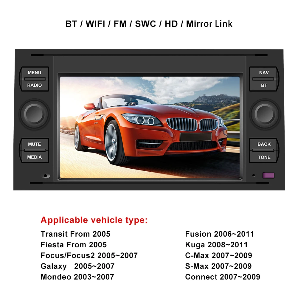 Hikity Android GPS автомобильное радио 2 Din Автомобильный мультимедийный плеер 7 ''аудио плеер для Focus Galaxy Mondeo Kuga c-max s-max Fusion Cars