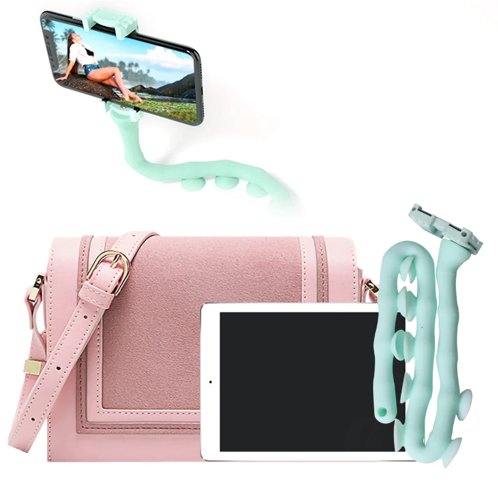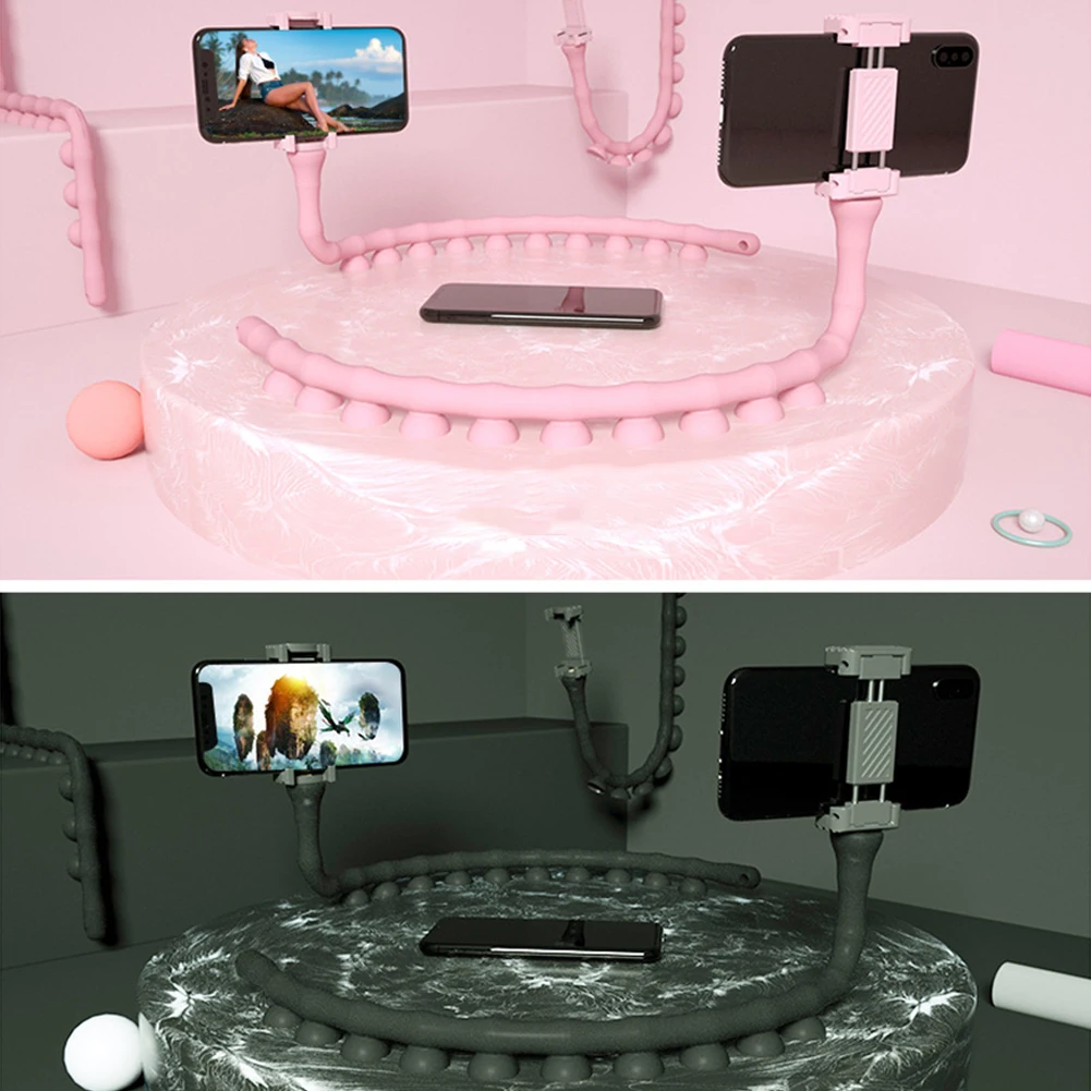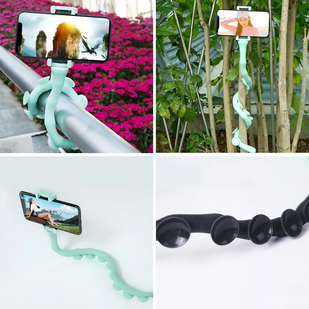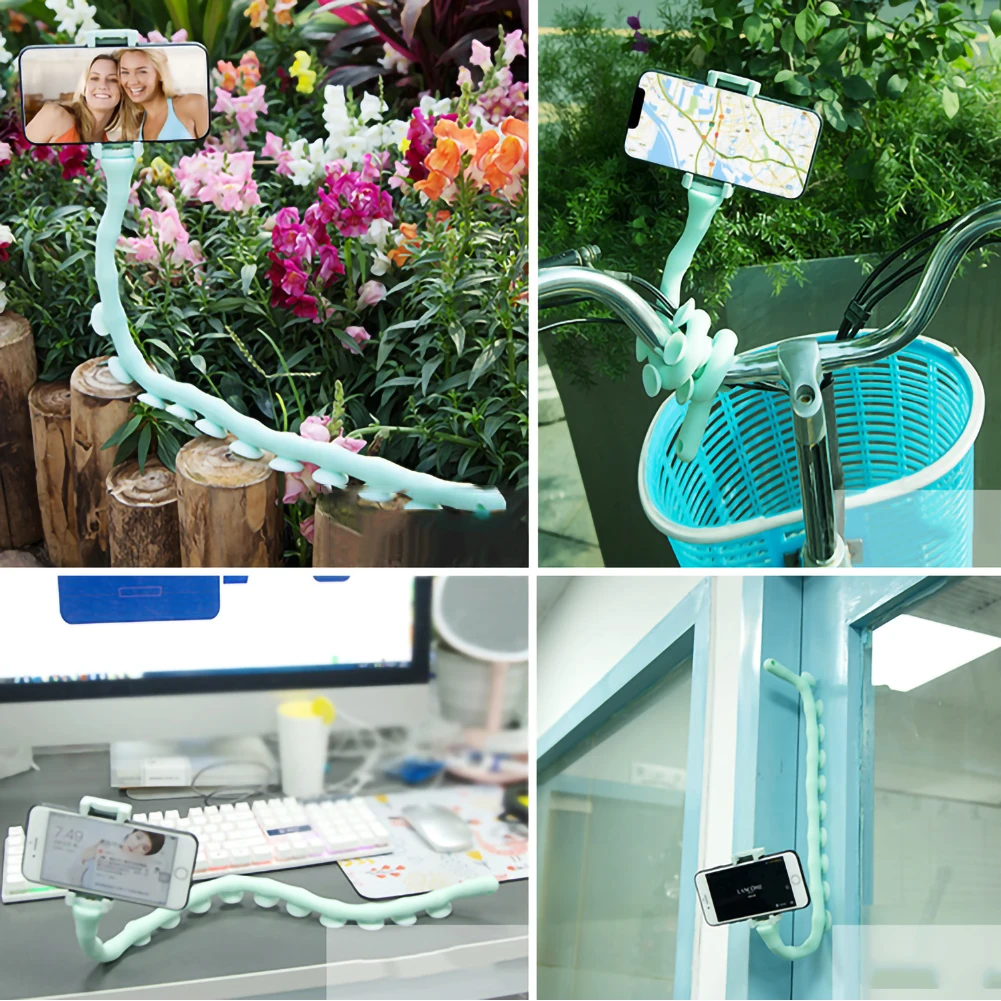 2. Функция добавила мощную функцию адсорбции, можно не только обернуть вокруг любого руля, ручки велосипеда, наружный поручень, ствол дерева и т. д., но также может быть применена к любой чистой поверхности офиса, журнального столика, настенные, кухонные принадлежности, мобильный телефон кронштейны для дверей и окон, Напольные плитки и т. Д., чтобы преследовать драму, видео фото, видео чат, навигация и так далее.