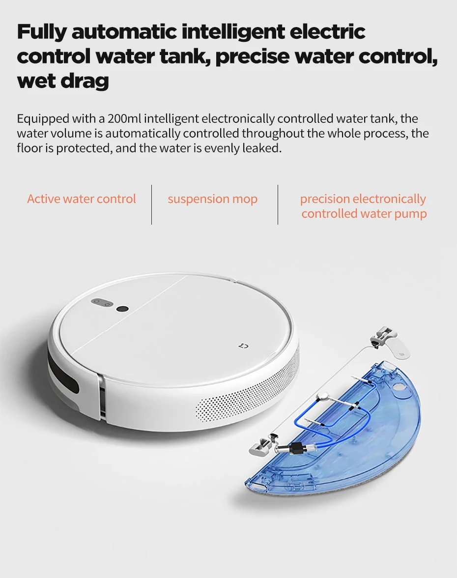 Робот оснащен сенсорным дисплеем 200 мл интеллигентая (ый) с электронным управлением резервуар для воды, , Которая автоматически контролирует объем воды на протяжении всего процесса Защищает пол и равномерно на выпуске воды без контакта с водой.