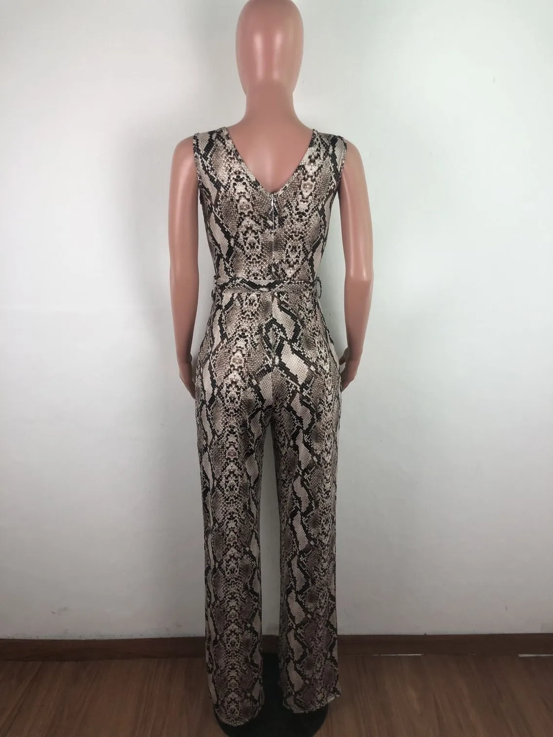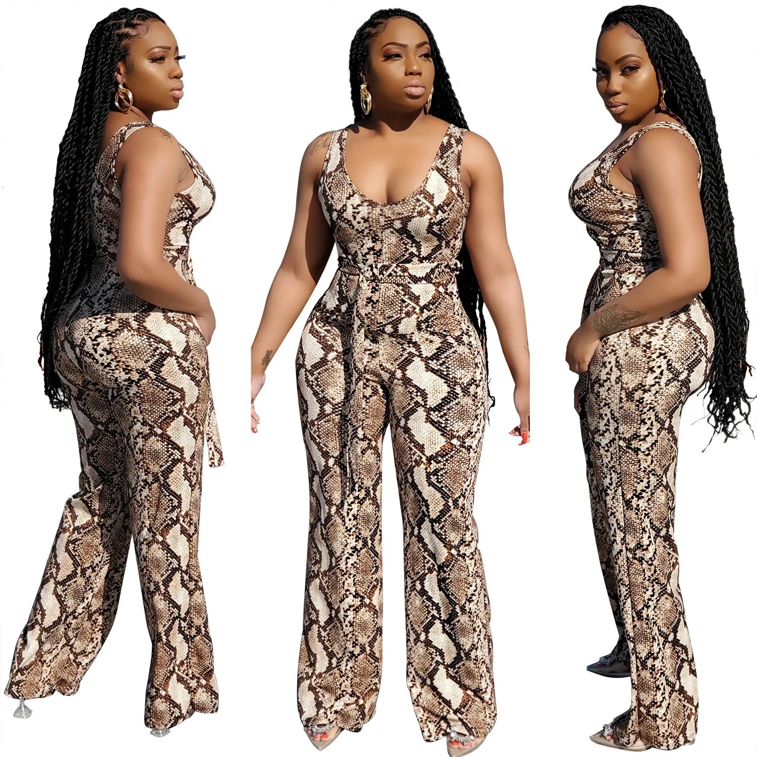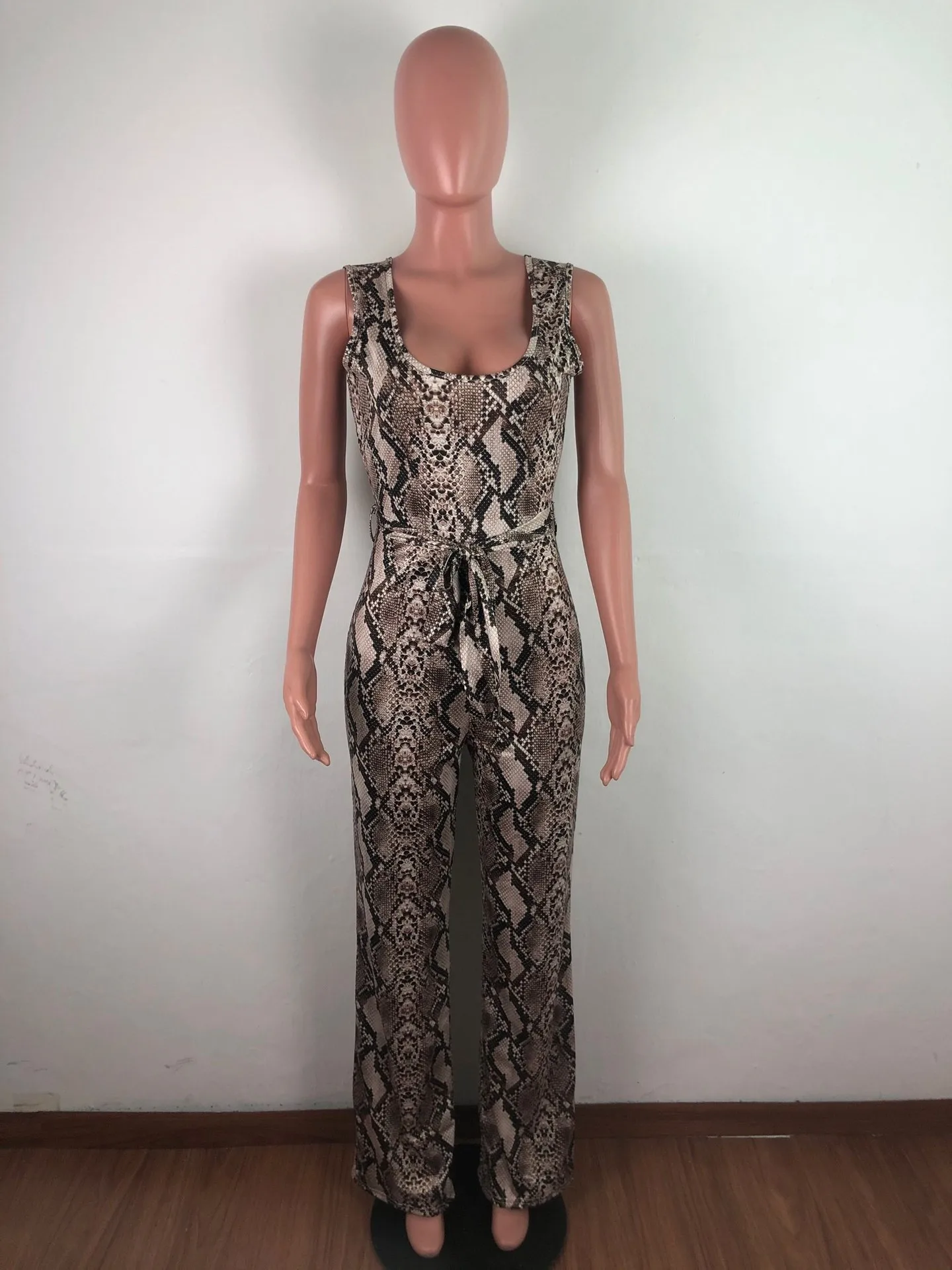 Женский комбинезон без рукавов со шнуровкой Echoine, сексуальный комбинезон со змеиным узором на тонких бретелях, клубный комбинезон