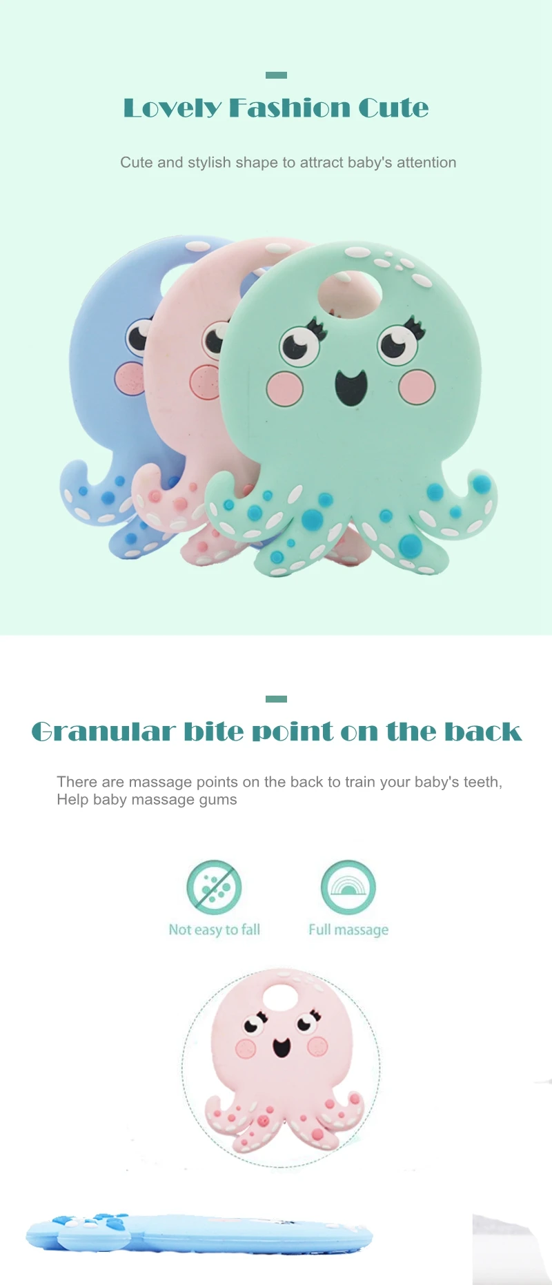 Наши восхитительные Силиконовые Прорезыватели изготовлены из высококачественного материала, как показано ниже: