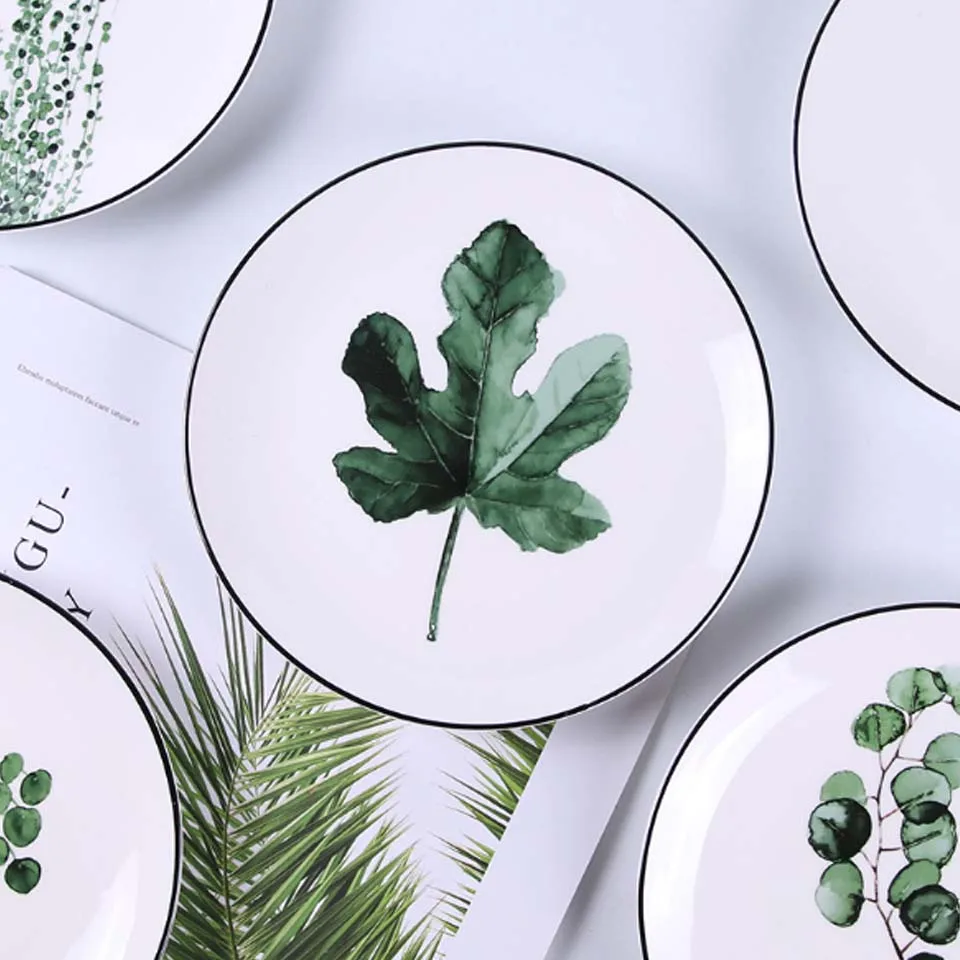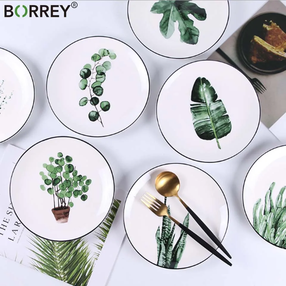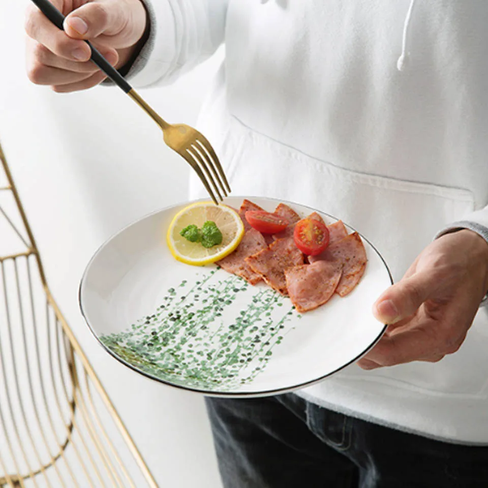 BORREY Chinese Ceramic Dinner Plates Sets Dinnerware White Porcelain Plate Bowl Round Dinner Plates Bone China Pizza Steak Dish