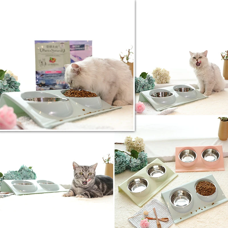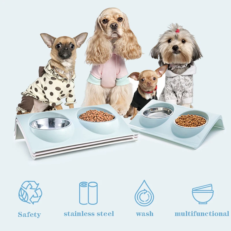 Двойные миски для собак и кошек из нержавеющей стали, влагостойкая кормушка для домашних животных, кормушка для собак, щенков, кошек, домашних животных, принадлежности для кормления, миска для домашних животных