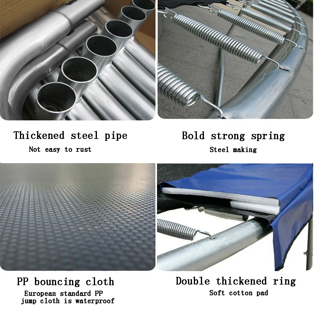 1x батут 1x сена 1х пружинная накладка 1x прыгать pad 1x тяжелый режим работы лестница стальная оцинкованная 4x u-образной формы; Большие размеры8х опорный стержень и крышка опорного стержня