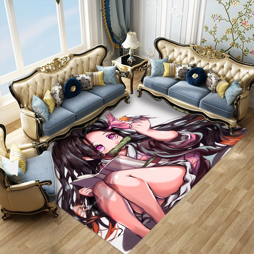 Japan Anime Demon Slayer Floor Mats 3D Print Polyester Kimetsu no Yaiba Doormats Anti Slip Rugs and Carpets Custom for Bedroom