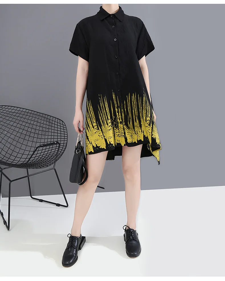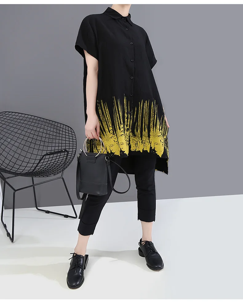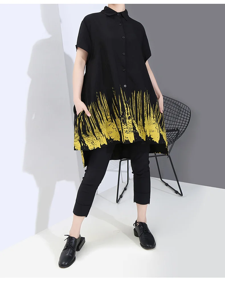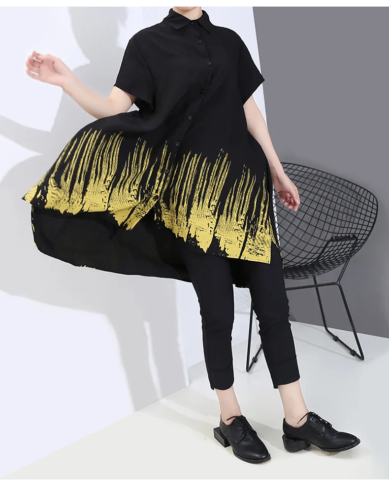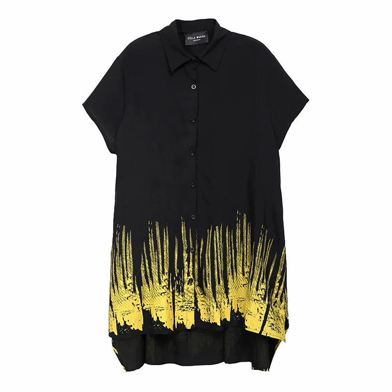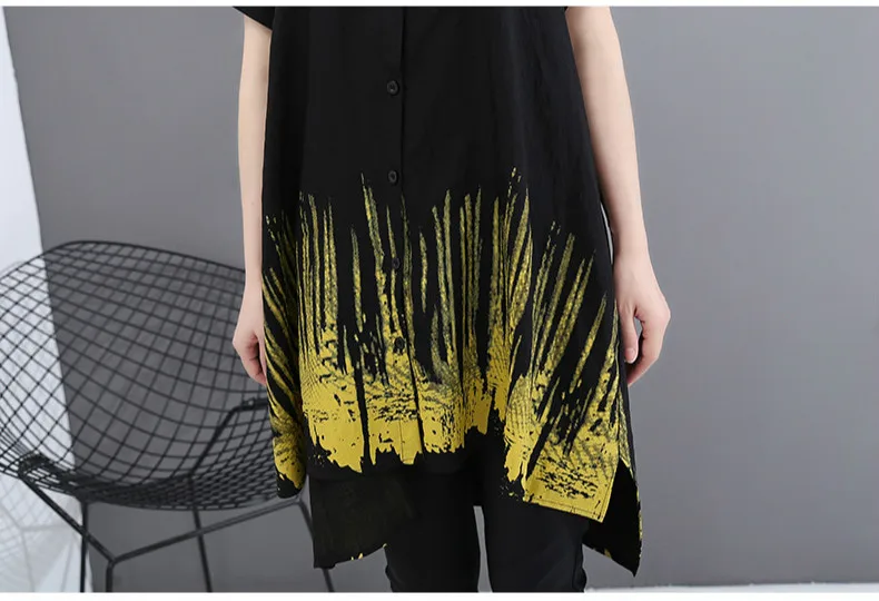 Летние корейские модные повседневные длинные рубашки с принтом размера плюс