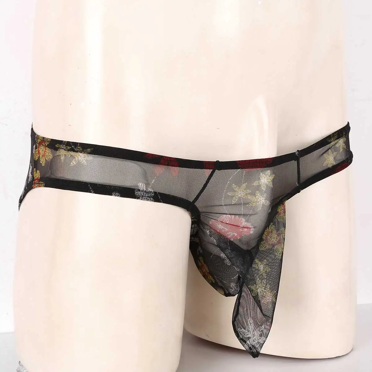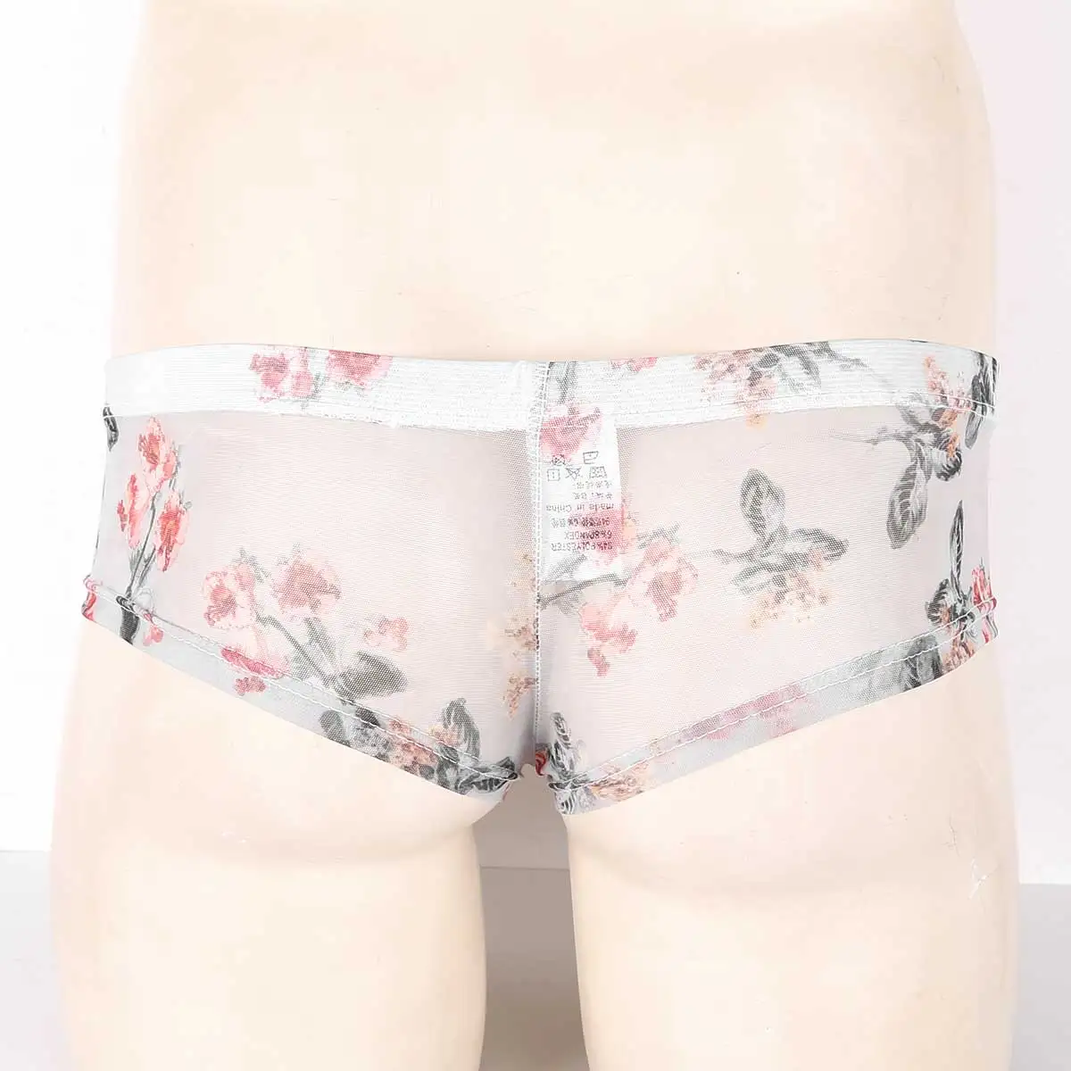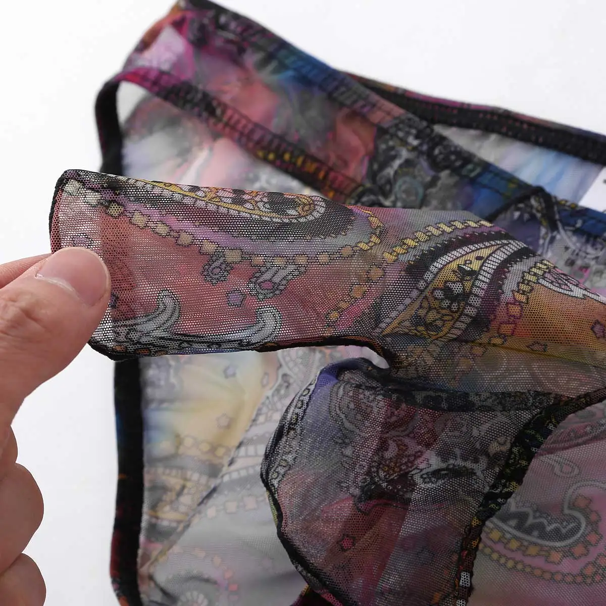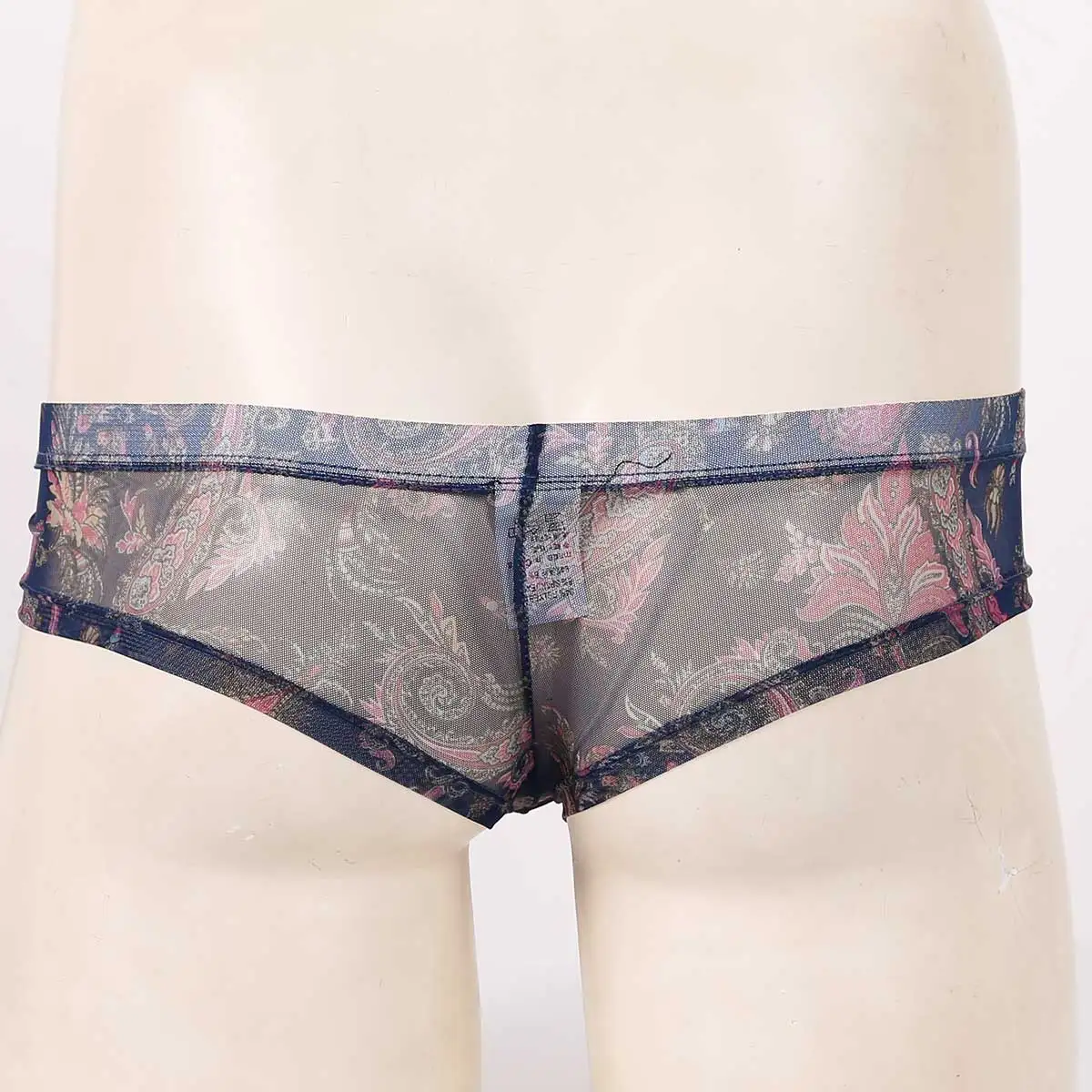 Мужские прозрачные сетчатые трусы в богемном стиле, нижнее белье, застежка-липучка.