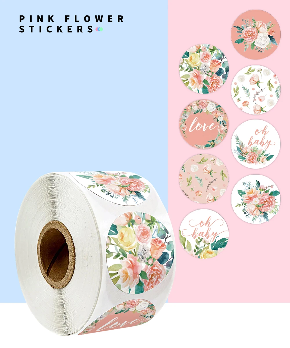 Посылка: 500 шт. розовых цветочных наклеек, 8 различных цветочных дизайнов. Слово: love,oh baby Размер: диаметр наклейки 2,5 см (1 дюйм) Материал: изготовлен из высококачественной клеевой бумаги, поверхность водонепроницаемая. Использование s: идеальное использование в качестве герметика. Супер милые наклейки, приятные, как симпатичный дополнительный элемент для украшения всех вещей.