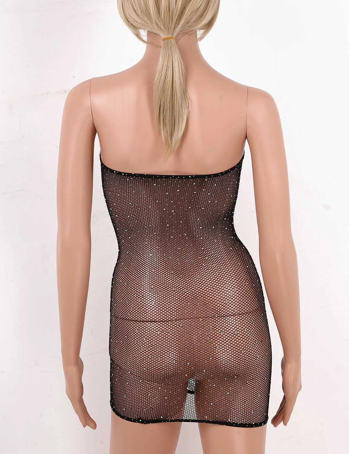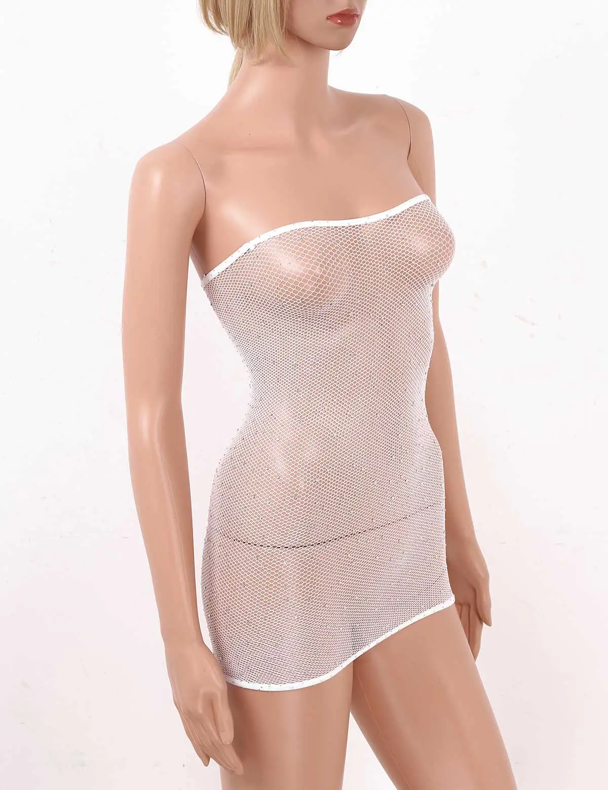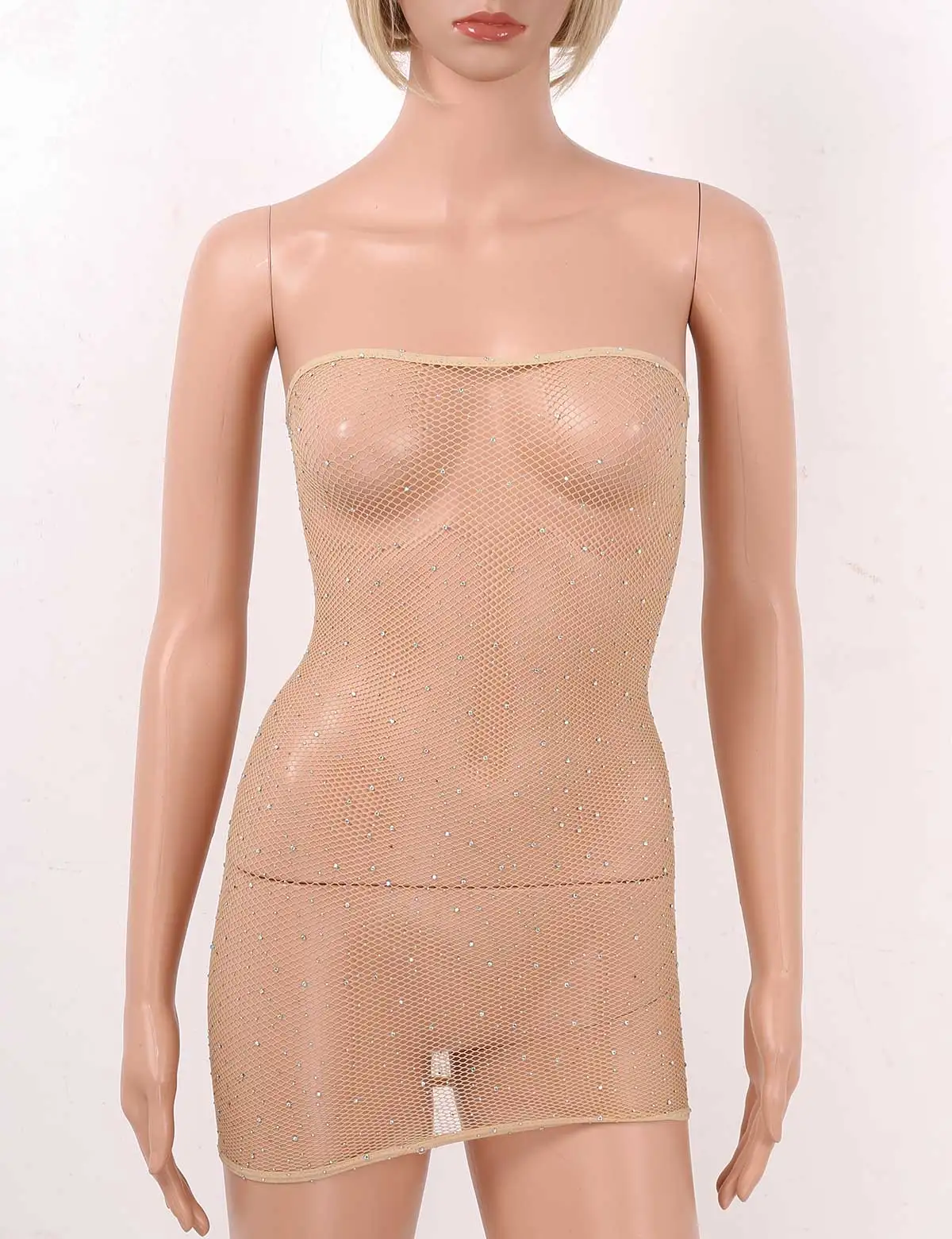 Без бретелек и выдалбливать сетчатый дизайн с блестящие стразы, бесшовная труба платье сексуальное женское белье, без застежки.