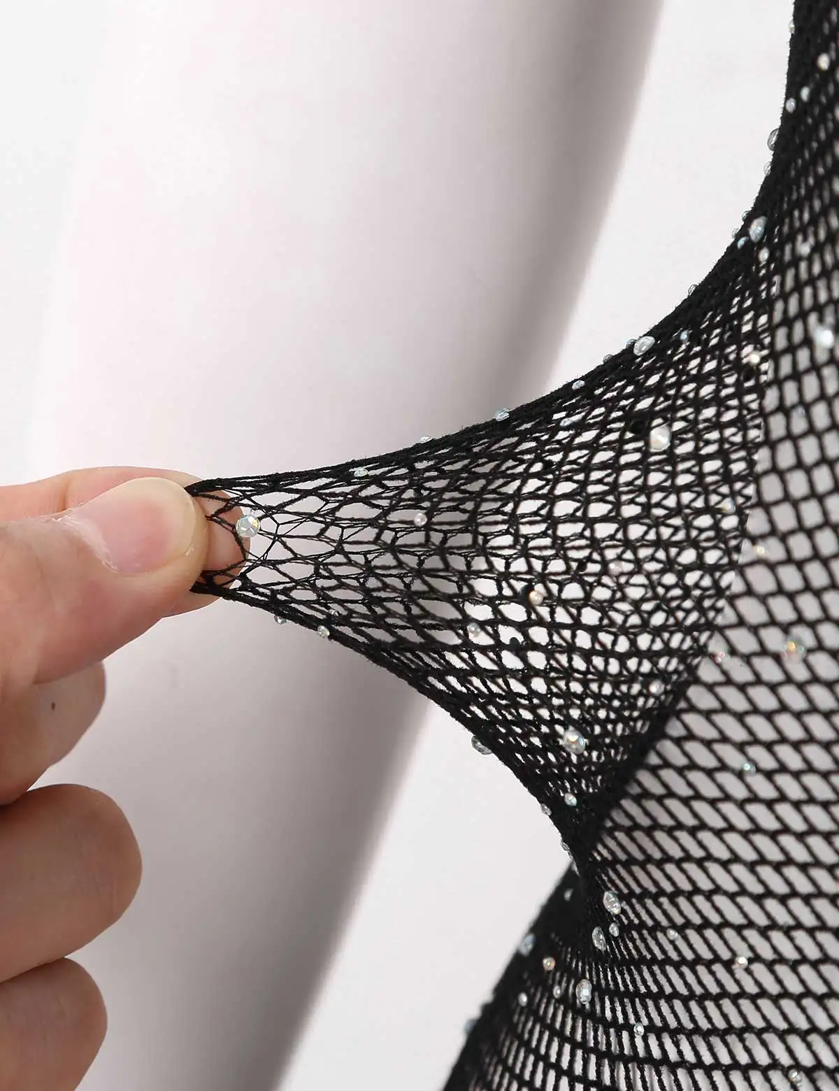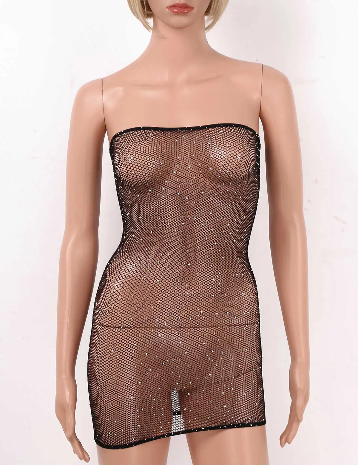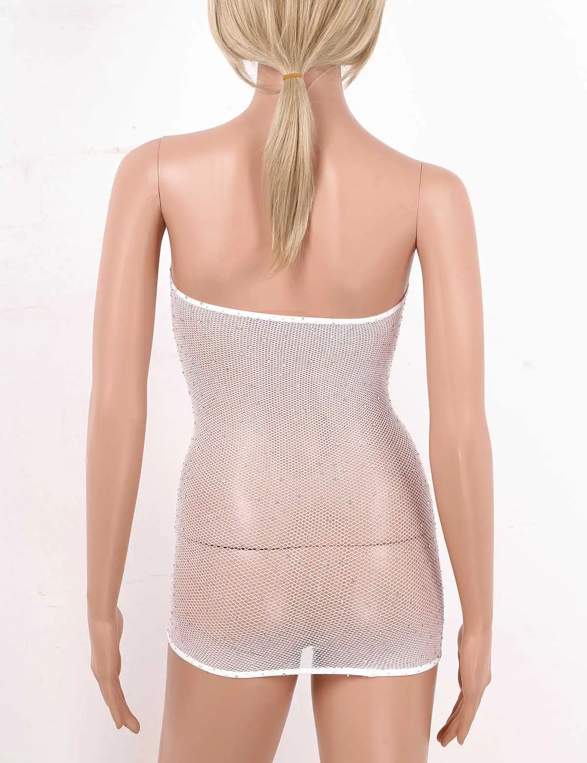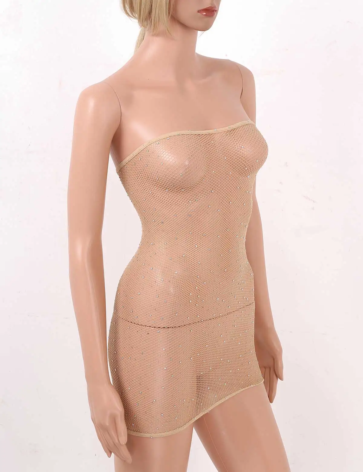 Без бретелек и выдалбливать сетчатый дизайн с блестящие стразы, бесшовная труба платье сексуальное женское белье, без застежки.