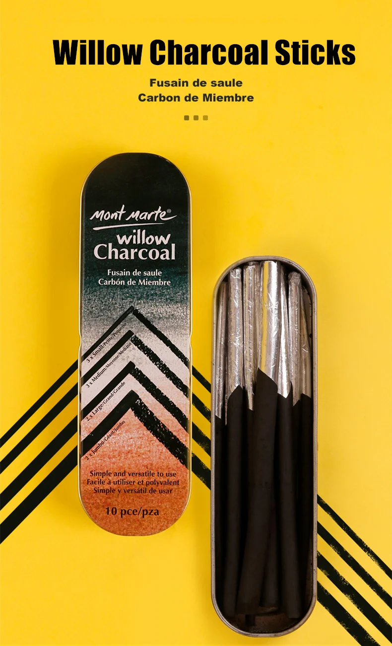 10 шт./компл., набор палочек для древесного угля, художественные наброски, карандаши для набросков с оловянной фольгой, не грязные руки, металлическая коробка MPN0043