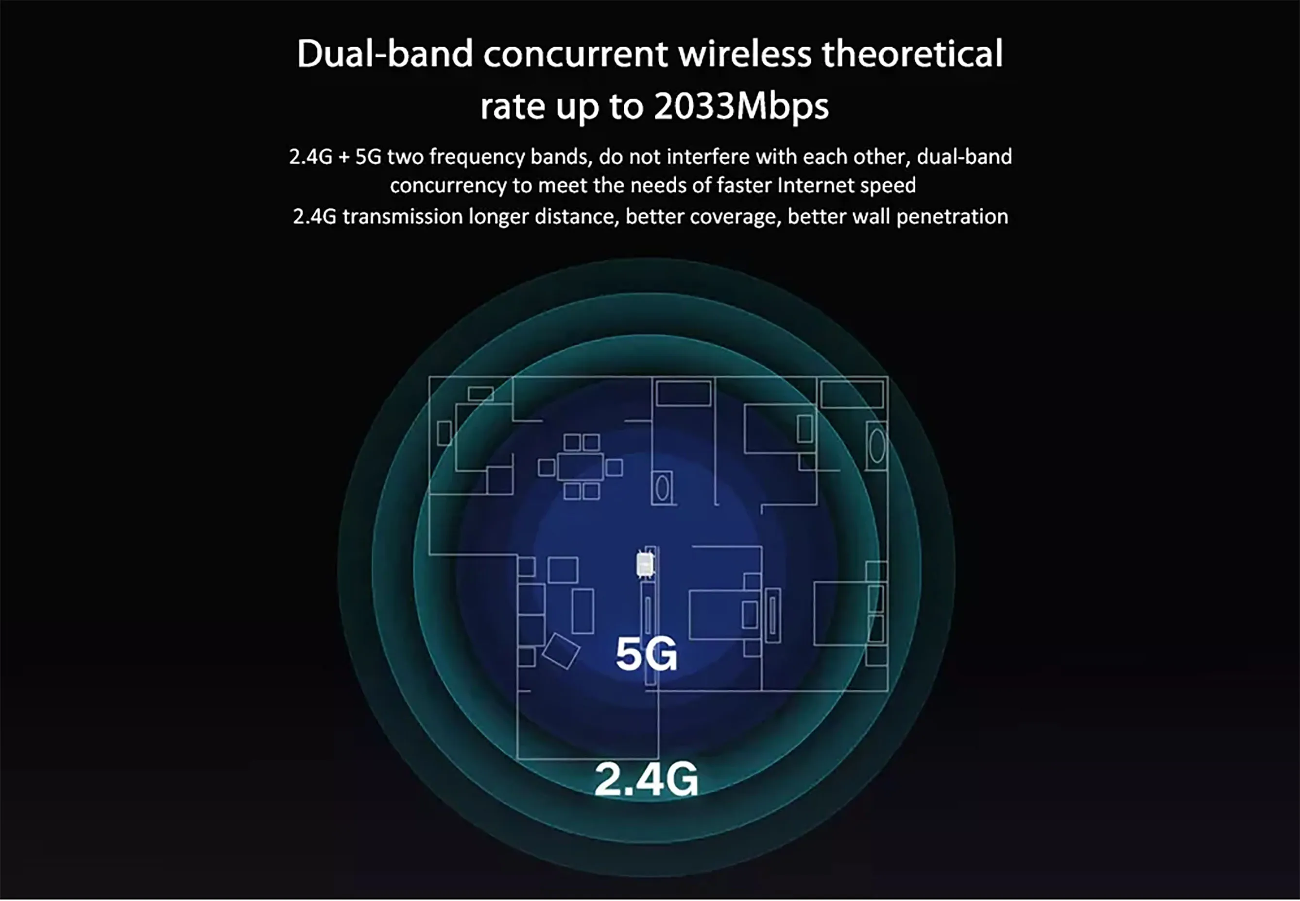 Двухдиапазонная Беспроводная Теоретическая скорость до 2033 Мбит/с
