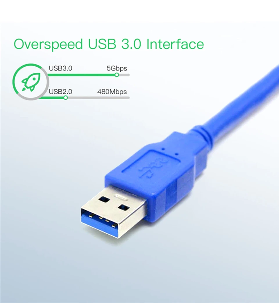 This USB extender cord supports high speed USB 3.0 data transfer rate up to 5Gbps - 10X faster than USB 2.0 (480 Mbps), which allows you to transfer HD movies or files in just seconds, when your host is equipped with USB 3.0 port. Also backward compatible with USB 2.0, 1.1 and 1.0 (speed limited by USB bus). Plug& Play on universal system, no driver required.