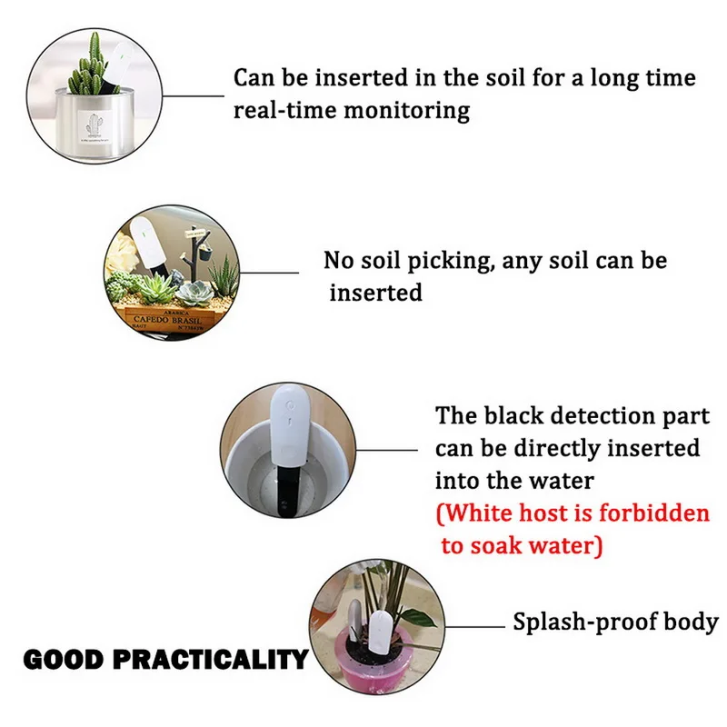 <Применение: может быть вставлен в почву для тестирования в реальном времени, давая вам знать, когда вода.