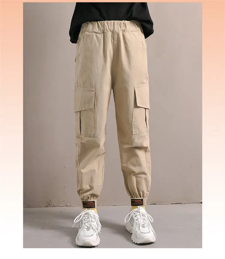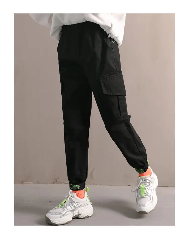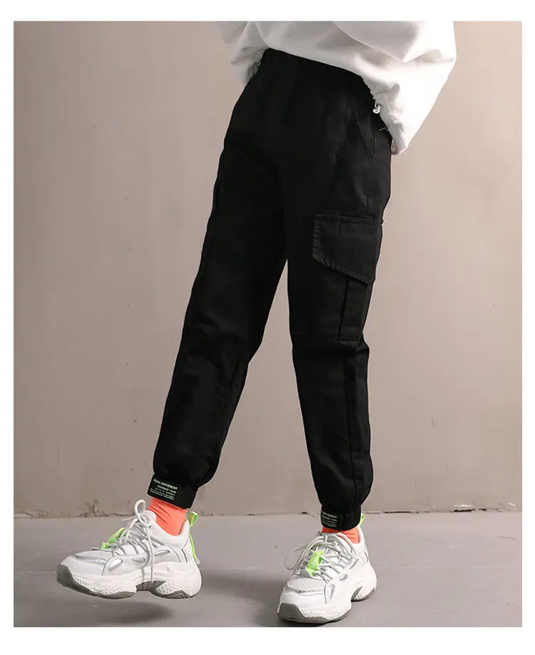 Повседневные брюки для девочек, весна-осень 2020, новая одежда, черные брюки-карго цвета хаки для детей 4, 5, 7, 9, 11, 13 лет