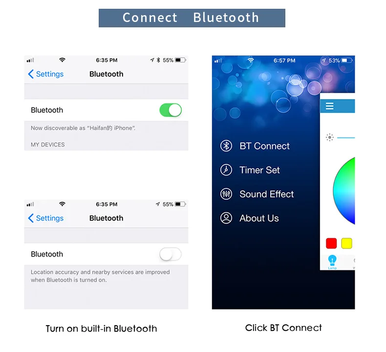 Продукт имеет уникальный дизайн 2-в-1-умный светодиодный свет и Bluetooth стерео аудио колонки. DSP на основе Bluetooth 4,0 + EDR (Улучшенная скорость передачи данных) и чистота, а также определение специальной речи. Я надеюсь, что вы получите бесконечное счастье от комбинации светильник и музыка.