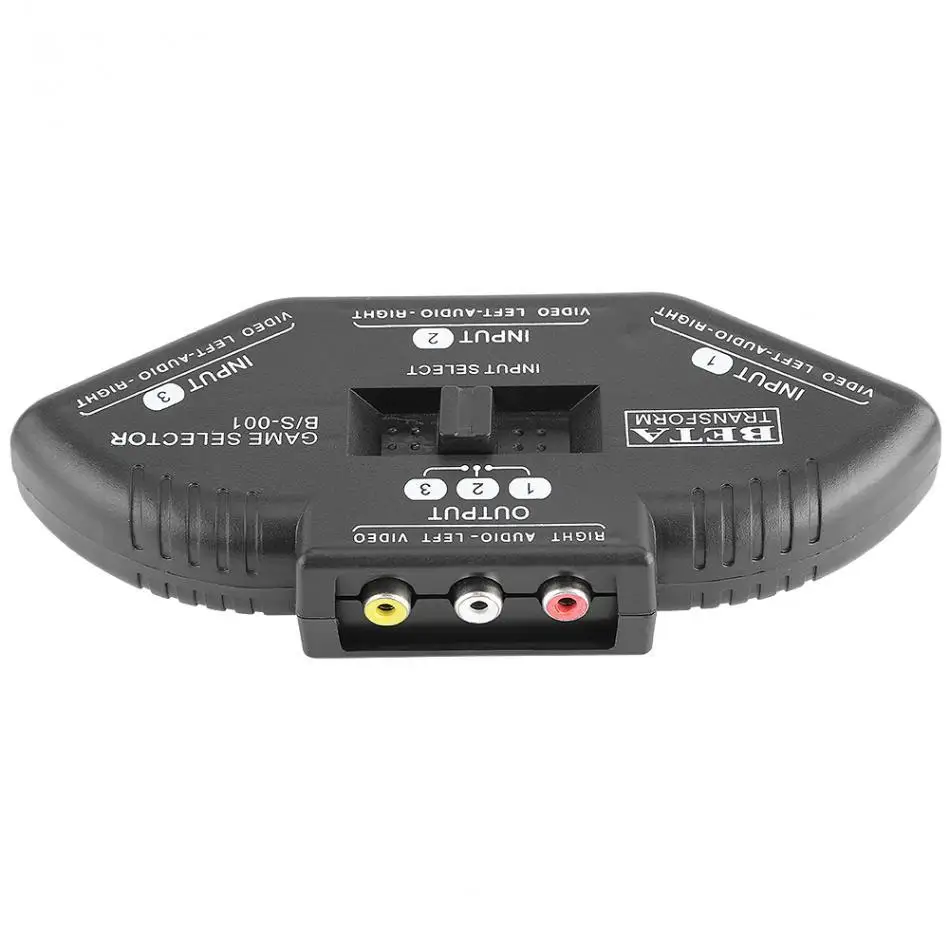 This AV switch shares a TV with three different signal sources/three sets of inputs and one set of outputs.
