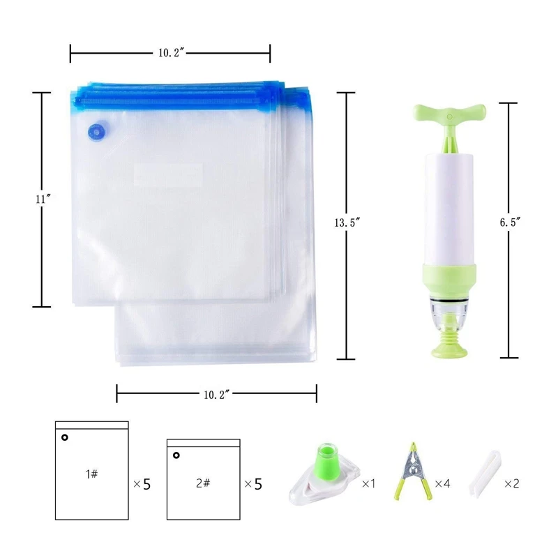 (Пищевая заставка и многоразовый вакуумный упаковщик)-вакуумная упаковка и уплотнение мяса, овощей, закусок, хлопьев и фруктов и т. д. Чтобы сохранить их свежими дольше. Подходит для всех видов твердой или полутвердой пищи. Усиленная двойная молния может быть многоразового использования до бесчисленных раз и обеспечивает герметичное уплотнение, сохраняет вашу еду свежей в 7 раз дольше, чем другие традиционные методы хранения продуктов.
