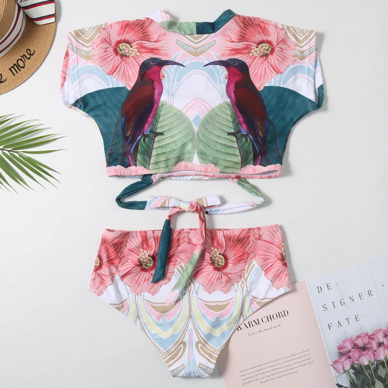 Раздельный купальник с принтом из двух частей, женские купальники с высокой талией в стиле ретро, пляжная одежда для купания, женский купальный костюм 2020
