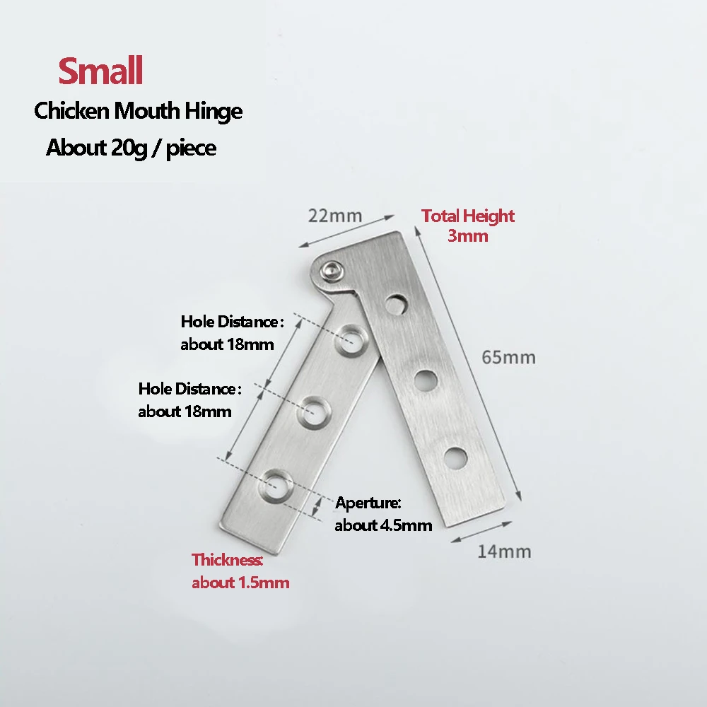 Цвет: матовый цвет Название: петля для куриного рта Материал: нержавеющая сталь Способ установки: Встроенный/без крышки Метод закрытия: шарнир с двумя секциями Основание: фиксированное Тип руки: Тип карты Размер: Маленький/Средний/Большой Характеристики продукта: Простая установка, свободное вращение, долговечность Использование продукта: подходит для всех видов дверей винного шкафа, дверей книжного шкафа, шкафчиков и т. д. Примечание: в ручном измерении есть ошибки, пожалуйста, обратитесь к фактическому объекту (единица измерения: мм)