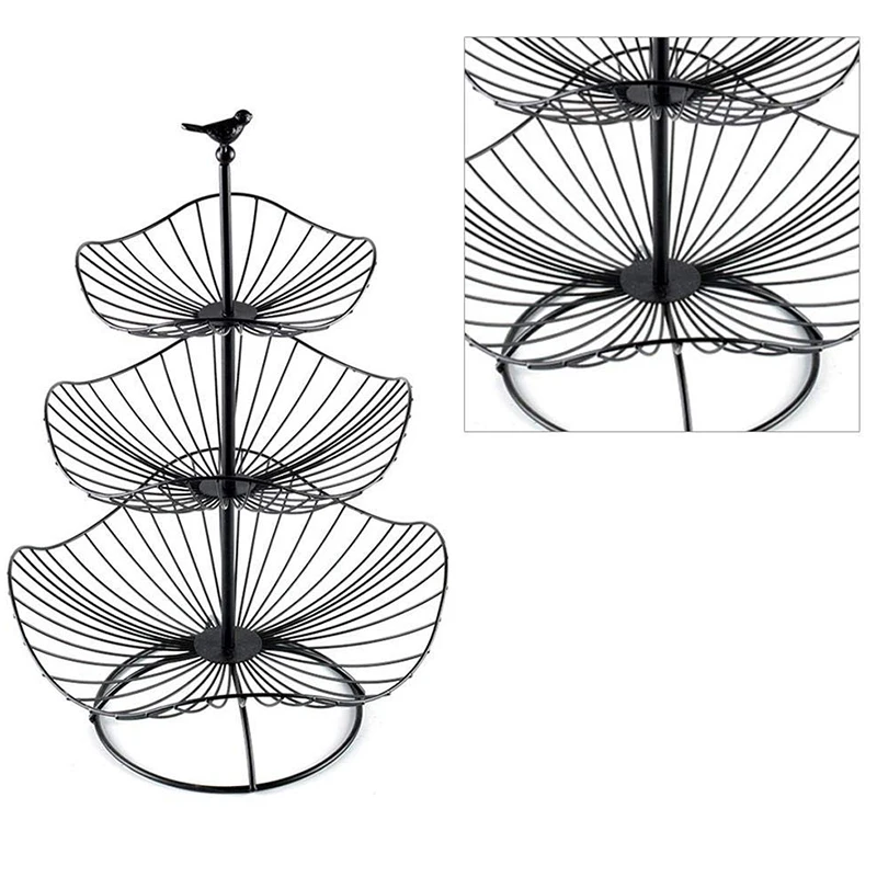 1. Корзина для фруктов представляет собой комбинацию из трех разных размеров с круглым вырезом и достаточной вместимостью для размещения различных фруктовых закусок.