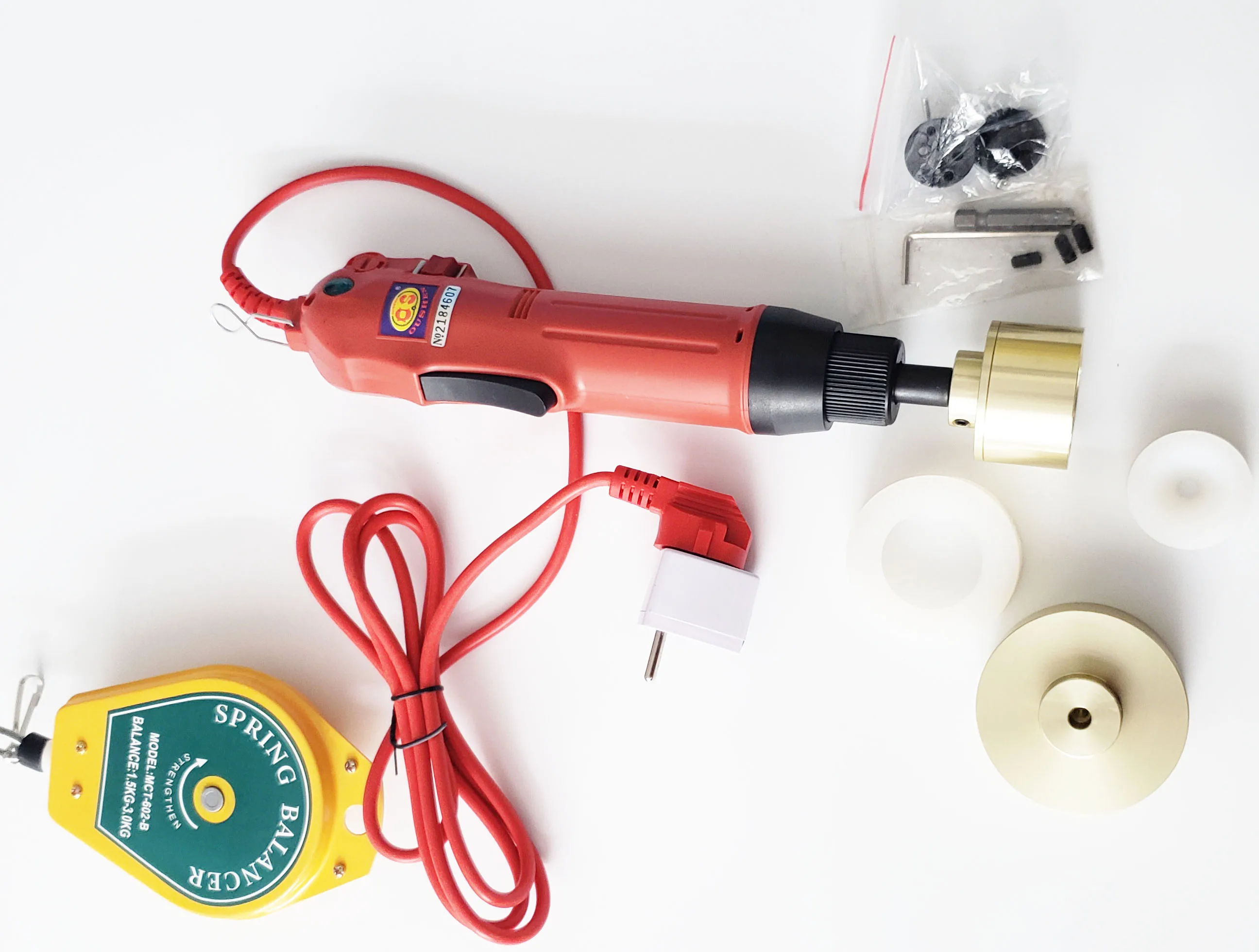Ручная электрическая укупорочная машина в основном используется для затягивания и ослабления винтов. Легко носить с собой, который может быть легко использован для затягивания или ослабления крышки. Регулируемое сцепление (регулировка) позволяет эффективно избежать повреждения крышки и уменьшить износ внутренней вилки, как только крышка затянет патрон, чтобы остановить спиннинг, показать, что вы можете быть следующей операцией крышки. Колпачок для Пинг подходит для различных высокопрочных колпачков для бутылок s применяется к колпачкам прямого действия 10-50 мм, одиночная производственная крышка непрозрачность до 30-90 бутылок/мин.