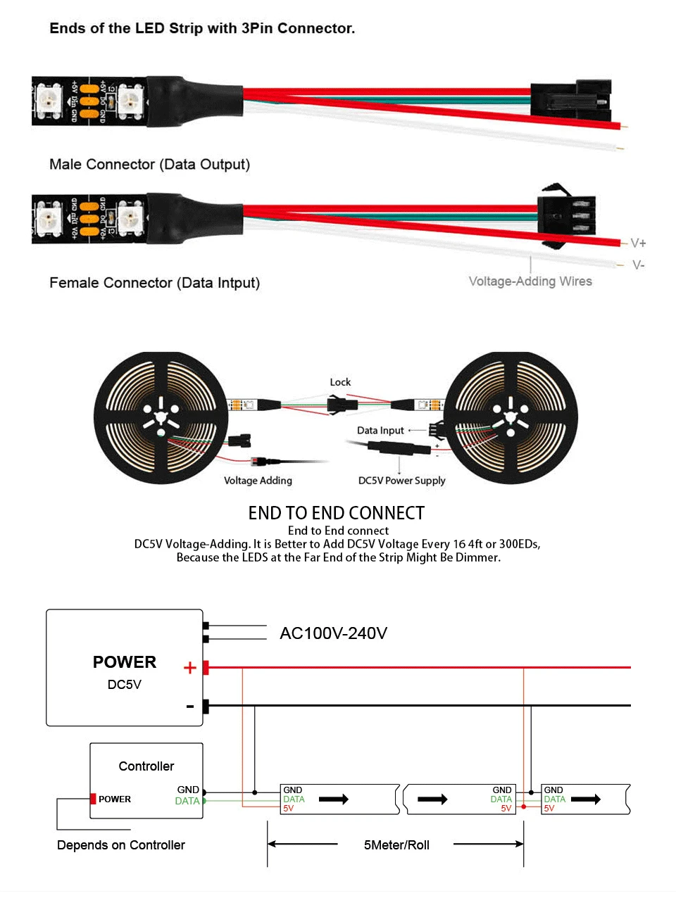 1. Светодиодный Тип: 5050SMD со встроеннымIC SK6812(1 IC контроль 1 светодиодный)