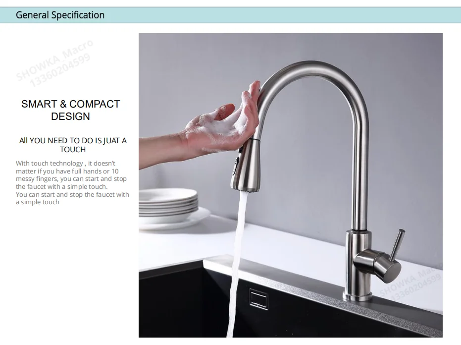 Умный сенсорный вытяжной кухонный кран, запатентованное устройство управления, Высокочувствительный новый дизайн, кран без изоляционного основания M080TT