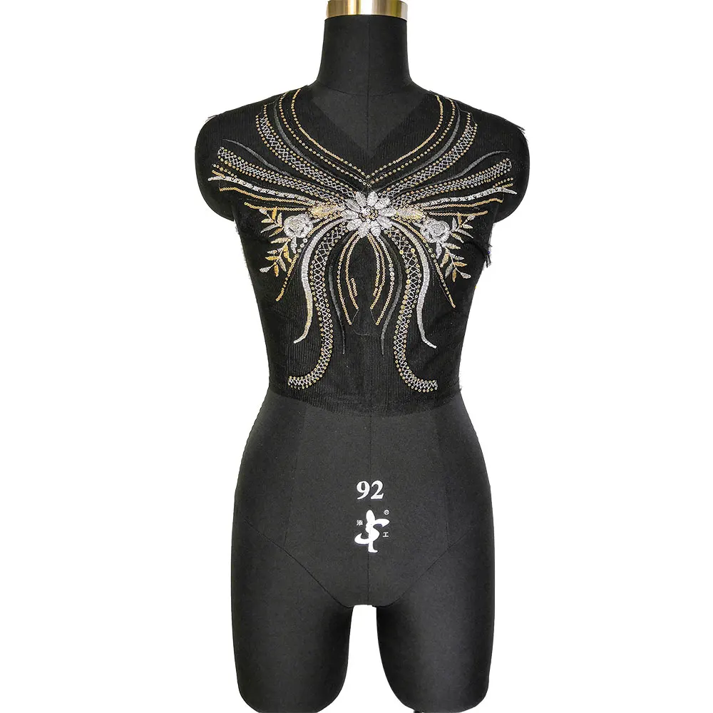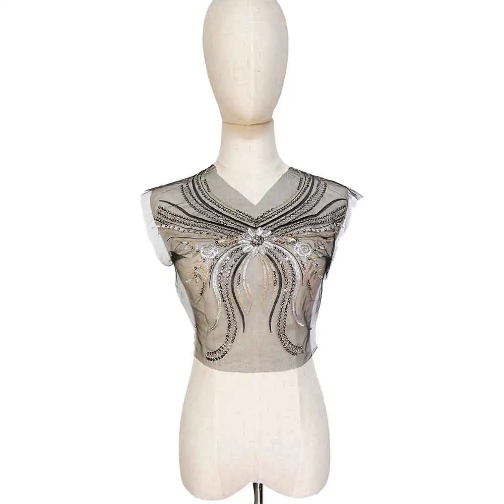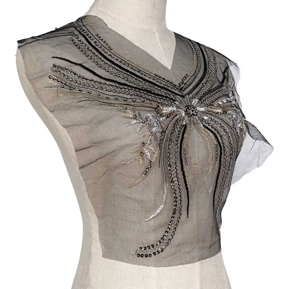 Butterfly Sequin Patches Fabric Black Mesh Lace for Clothing Dress Sewing Appliques Collar