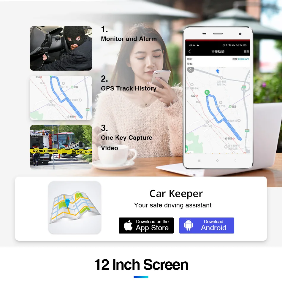 Отслеживайте местоположение вашего автомобиля, удаленно фиксируйте, что случилось с вашим автомобилем из любой точки мира. Просматривайте изображения и просматривайте видеоклипы вашего автомобиля с помощью приложения на вашем смартфоне, как только вы подключены к сети Интернет.
